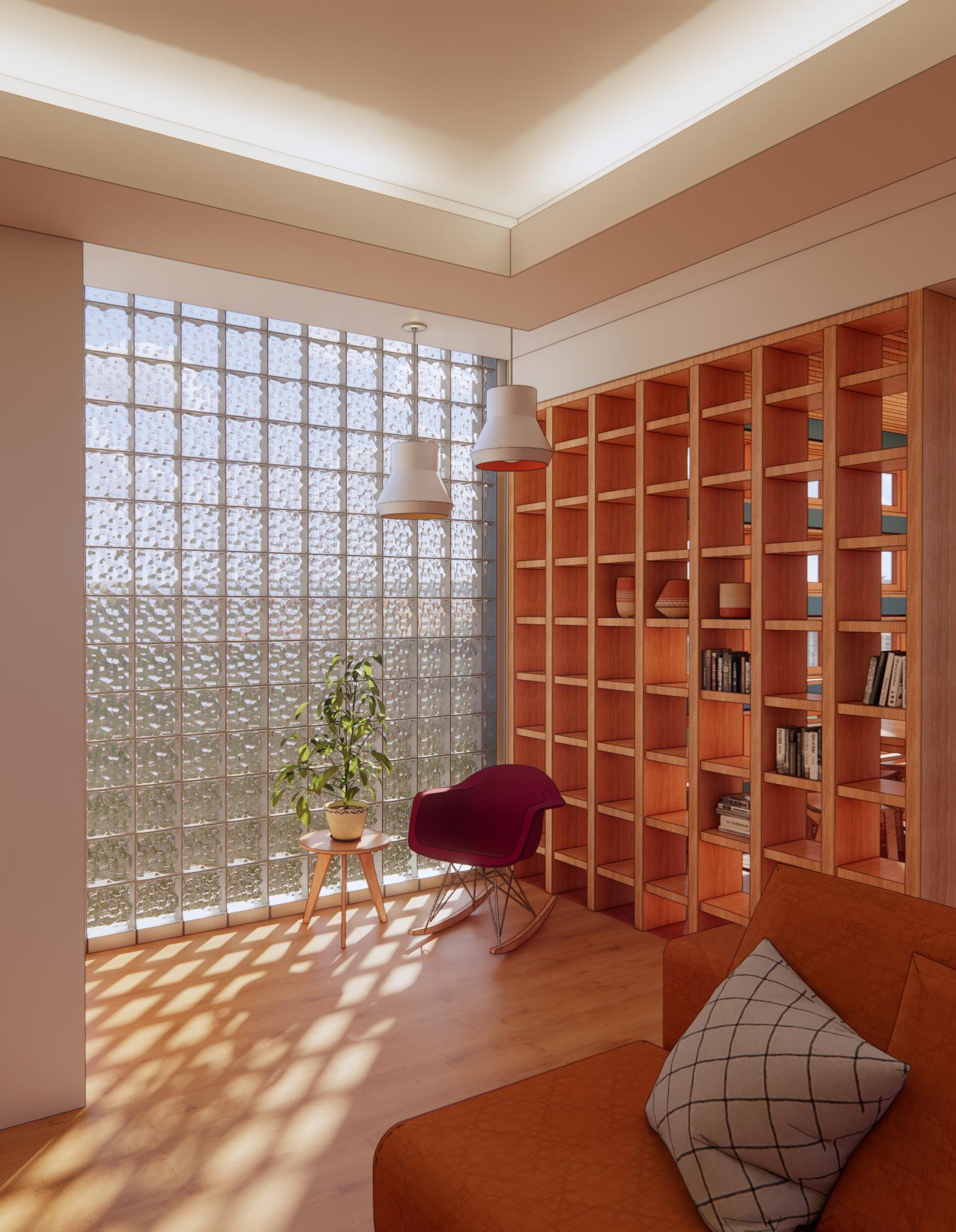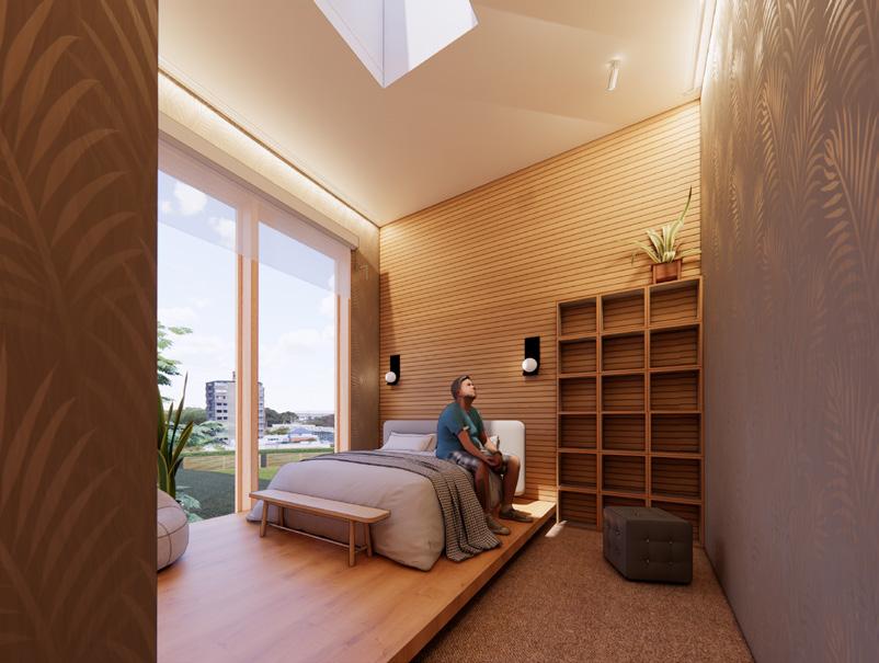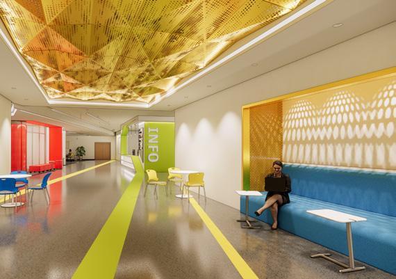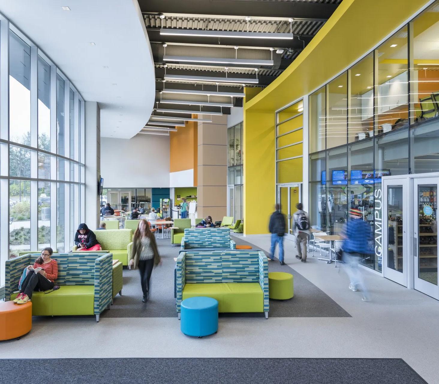 To increase access to daylight and promote well-being, the student lounge is programmed just