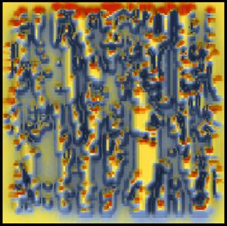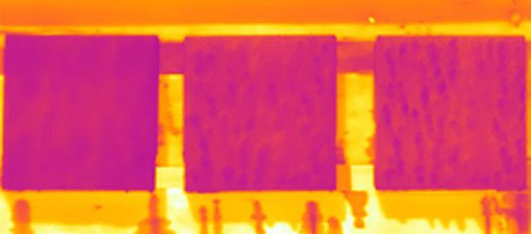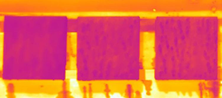 Our hypothesis stated, panels with more extreme bark patterns, Our studies prove that the immediate effect of moisture on the simulation (panels submerged in water) showcased higher cooling furrows began to read as the coolest zones as the panel self-shades as the photo after 10-minutes of the panel that was submerged study was limited by in between drying times, length of submersion,