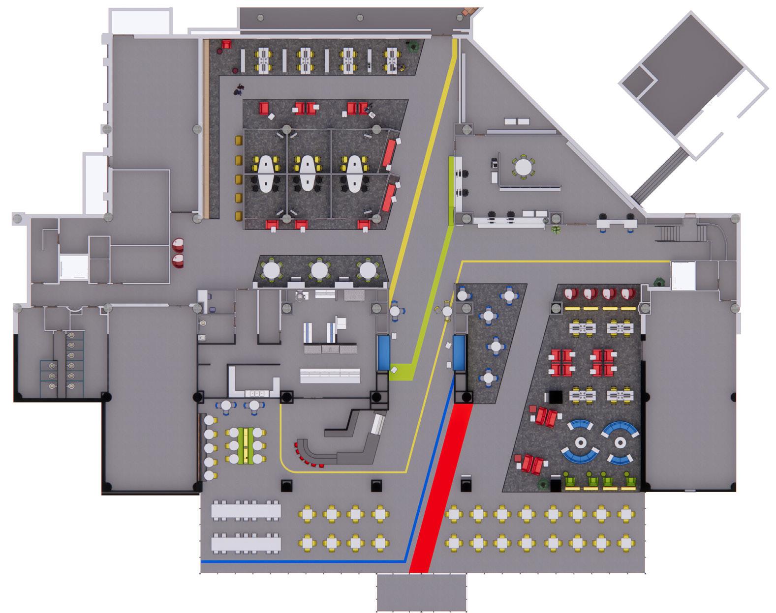 Strengthening the relationships of students and faculty of different programs by promoting travel through the three connected buildings