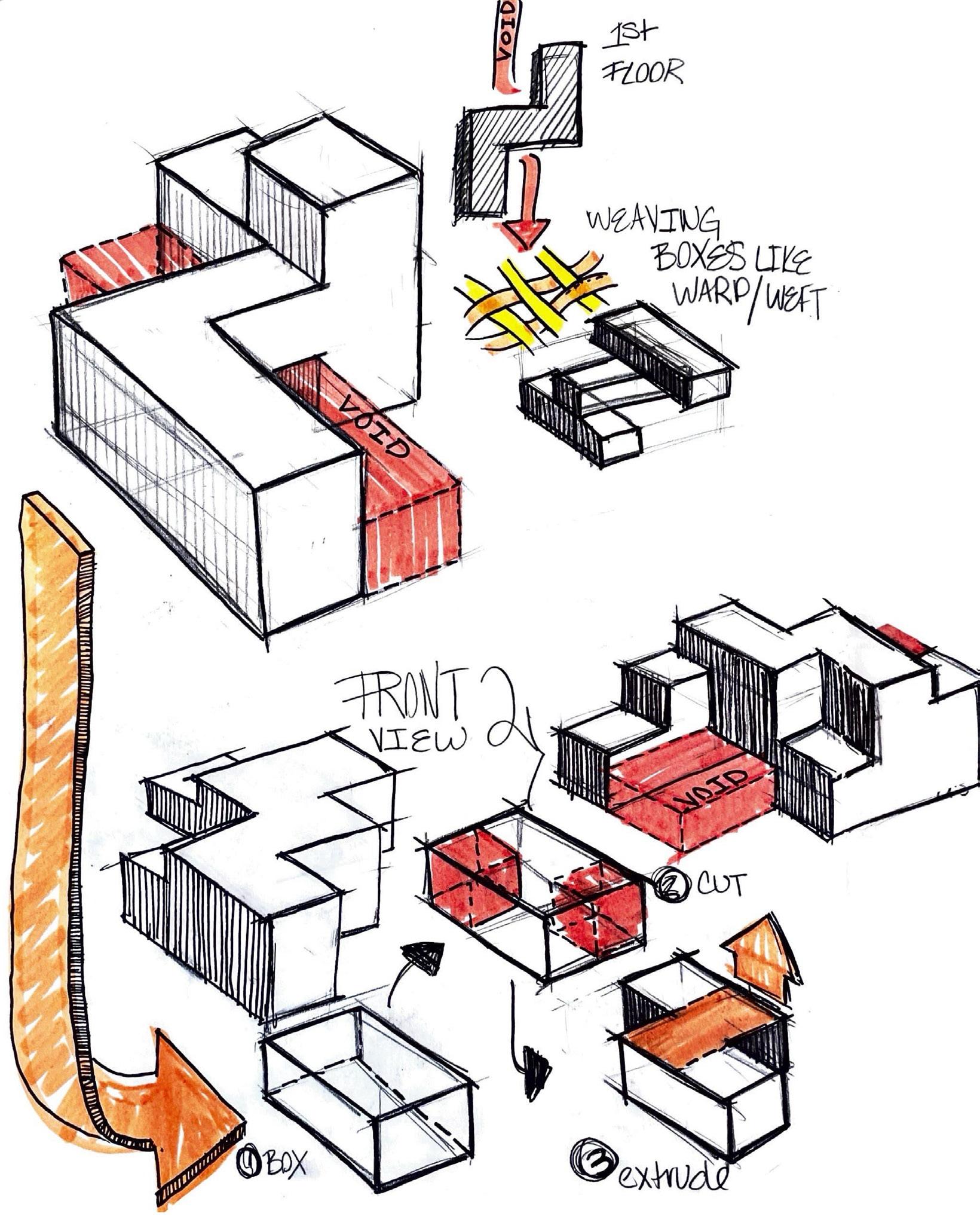 Ideas showcase experimentation with the concept of interwoven, different warp and weft paths, come together to create a holisitic fabric of culture.
