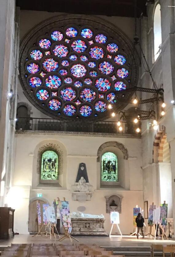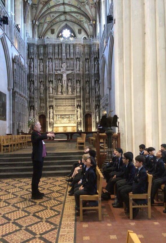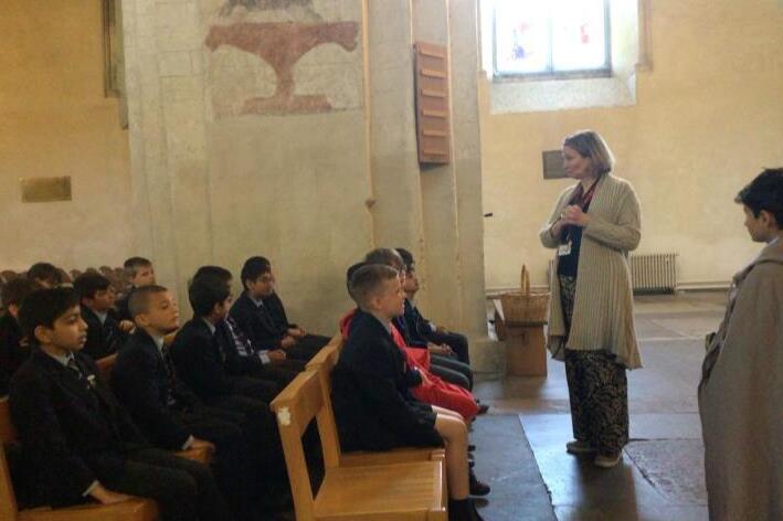 When we went to St Albans the first thing we saw was a huge ancient looking Cathedral. We then entered the Cathedral; it was so calm and peaceful inside. Our tour guide told us the story about St Albans Cathedral but to make the images clearer in our heads he got some cloaks and props and chose some of us to act it out. It was really interesting learning about Alban. We then were shown around the Cathedral, taking note of the main features, especially the font, shape of the building, the altar, pulpit and cross of Jesus. The best part was getting to meet a friendly Priest who was responsible for the youth work at the Cathedral. We loved asking him questions that linked to our History and T&P work, linked to the reformation and the different traditions within the Church.