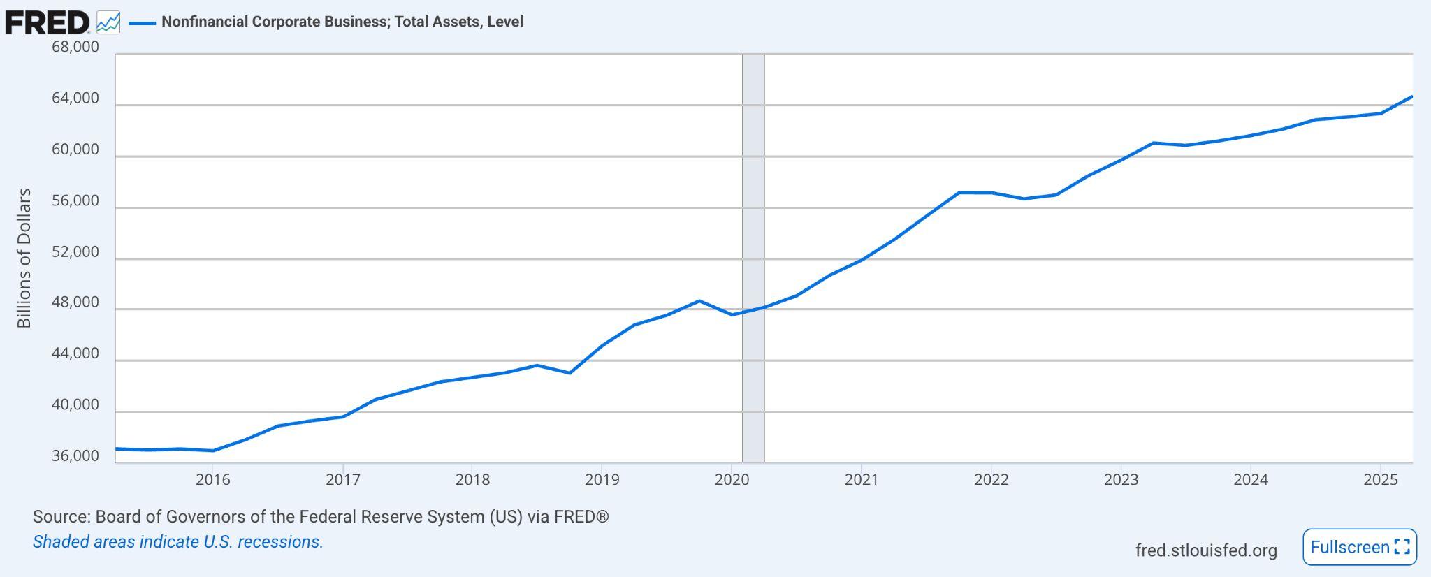 圖17. 非金融企業總資產:美國企業持有接近歷史高位的金融資 產,即便信貸環境收 緊,仍展現出強勁的流動性與抗壓性