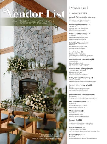 Amid the artistic flair and timeless charm that dance throughout the layers of this Fall/Winter issue, you’ll find an abundance of ideas and fresh inspiration for the coming season from “Things We Love” on page 12 and a collection of Real New Hampshire Weddings on page 27 that confirms there’s no shortage of ways to throw the party you’ve been longing for. A complete “Crafted with Intention” New Hampshire intimate wedding guide awaits you on page 42, where planner Emma Bogardus gives her tips and tricks to help you plan your dream day experience. If you’re looking to embrace après-ski-inspired ambiance with a dash of classical romance in your wedding design, check out the “Warmth of Winter” styled shoot at the Van Horn Estate in Holderness on page 54. Don’t miss out on our new Vendor List on page 64 for everything you need to know about planning your special day, from venue to DJ suggestions.