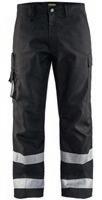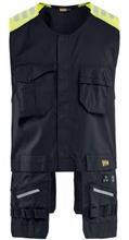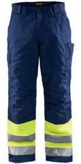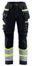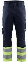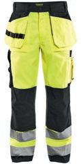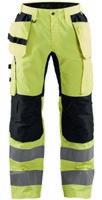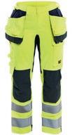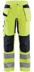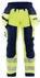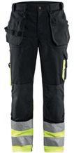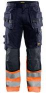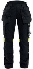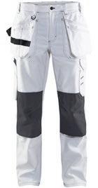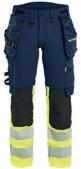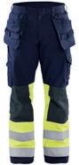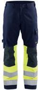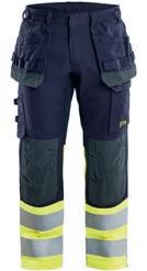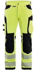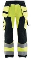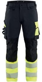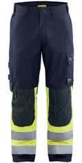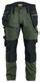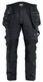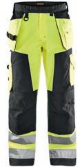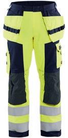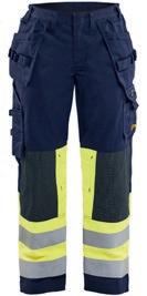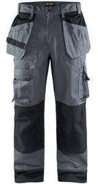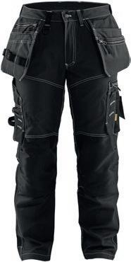FUNKTIONALITET: Meshpanel i knäveck, 4-vägsstretch DETALJER: Gylf med plastblixtlås, Två hällor i sidorna med knapp för hammarhållare, Breda hällor bak och i sidorna, Metallknappar, Knivhållare med knapp, D-ring i linningen, Innerbenssöm med 3-nålsstickning, Avtagbar ID-kortsficka, D-ring FICKOR: Bakfickor med bälg, Benficka med bälg och lock med kardborreknäppning samt en invändig telefonficka i mesh, Benficka med blixtlås, Insticksfickor, Knäskyddsfickor, Verktygsfickor - extra breda, försedda med verktygshankar och extra verktygsfack, Förstärkt tumstocksficka med knivhållare och pennficka FÖRSTÄRKNING: CORDURA®-stretch-förstärkta knäfickor, Förstärkta verktygsfickor, tumstocksficka, bakfickor och baksidan av benavslut REFLEX: Reflexdetalj på vaden, Reflexdetalj på benficka AVSLUT: Benavslut med förstärkning baksida CERTIFIERING: EN 14404:2004+A1:2010 tillsammans med knäskydd 4027, 4057, 4058 och 4032, Oeko-Tex std 100, SE 23-302, RISE