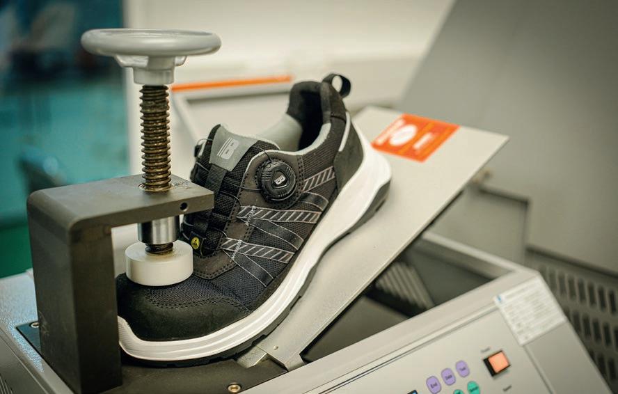 Blåkläders skofabrik invigdes 2022 och har kapacitet att tillverka 900 000 par skyddsskor årligen. Där finns också vårt högteknologiska testlaboratorium som säkerställer att skorna håller hög kvalitet, är funktionella, ergonomiska och säkra. För att ingen ska behöva stå ut med eller slänga obekväma arbetsskor testar vi alla våra skyddsskor minutiöst, precis som med våra kläder. Skor som håller länge ger både nöjdare kunder och minskar onödiga klimatutsläpp.