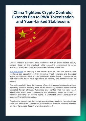● ChinaTightensCryptoControls,Extends BantoRWATokenizationand Yuan-LinkedStablecoins