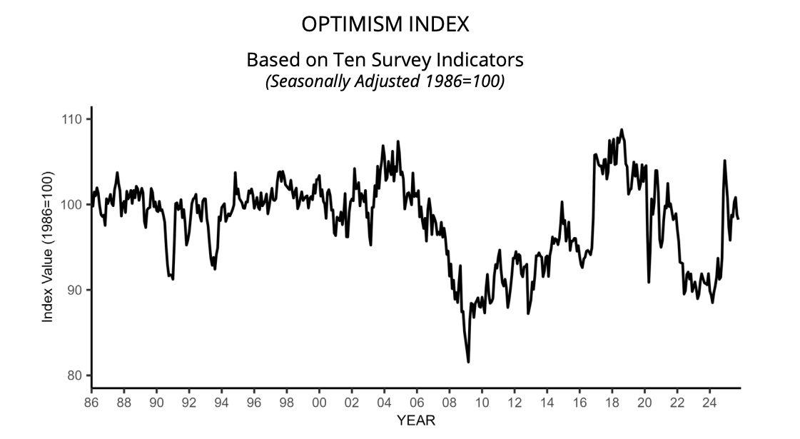 AccordingtotheNFIBSmallBusinessOptimismIndex,releasedbytheNational Federation of Independent Business last Tuesday, November 11th, sentiment among US small firms slipped by 0.6 points in October to 98.2, though it remainedslightlyabovetheindexʼs52-yearaverageof98.Theaccompanying UncertaintyIndexdroppedsharplyby12pointsto88,itslowestlevelthisyear, signalling that while business owners are uneasy, they are not yet in crisis mode.Smallbusinessownersreportlowersalesandreducedprofits.Thereport showsclearsignsofstrainbeneaththesurface: