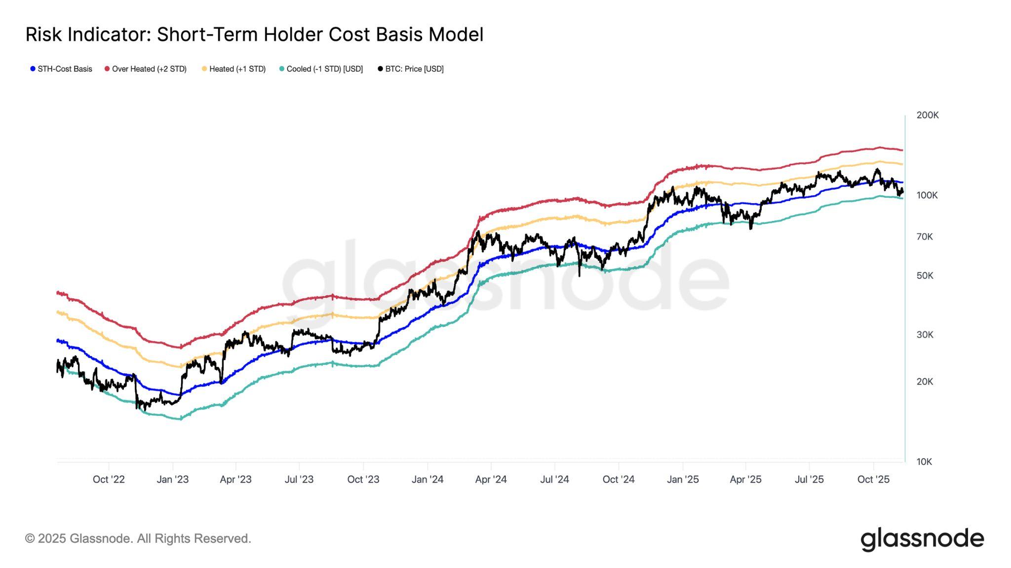 This drawdown mirrors the contraction phases observed during June–October 2024 and February–April 2025, both periods in which BTC stabilised only after anextendedintervaloftradingwithinacompressedlowerrange.Untiltheprice can reclaim the STH cost basis near $111,900 as a sustained support, the probability of revisiting the lower boundary of the current $94,000$106,000 consolidation range remains elevated. Such a recovery would require renewed demand inflows and a shift in market structure; absent that, the market is likely tocontinueoscillatingnearthebottomofthisrange.