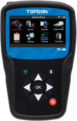 The TP58 TPMS Diagnostic Tool from TOPDON allows users to activate, read, diagnose, and service all major OEM and aftermarket sensor brands. Technicians can access sensor IDs, temperature, battery status, and more. Compatible with 100 percent of OEM sensor diagnostics and 90 percent OBD-II coverage. Additional features include: fast, intuitive touchscreen interface; Wi-Fi connectivity for automatic updates; OBD-II relearn and TPMS DTC reading; custom placard adjustments; ECU unlocking for Toyota and Tesla BLE support; 5 years of free software updates; DOT recording and tire tread depth measurement support; make, model, and year lookup via VIN barcode scan; and optional tire tread depth gauge.