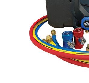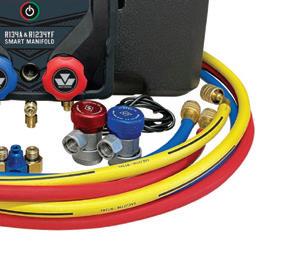 The R134A & R1234YF Smart Manifold Gauge Set from Mastercool features a 4.3” color touchscreen for easy viewing of pressure and temperature readings, an automatic shut-off to save battery life, and unit conversions between pounds, ounces, kilograms, and milliliters. It offers extensive pressure readings in psi, bar, MPa, kg/cm2, and kPa for versatility, while the built-in refrigerant database provides factory-recommended capacities for precise recharging. The long-lasting rechargeable lithium battery offers over 30 hours of use and USB-C charging.