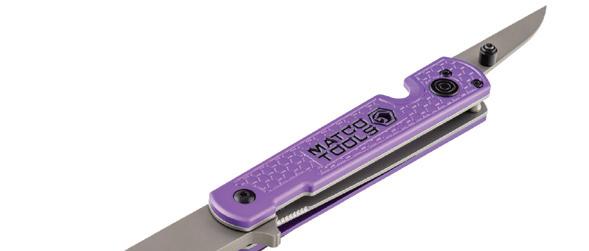 The Everyday Carry Folding Clip Lifter with Knife Display, No. MTCCLKN12, from Matco Tools, is available in purple, green, orange, and blue. This 2-in-1 tool features a dual-blade design, combining a pocket clip lifter with a knife to tackle a variety of tasks. The U-shaped stepped tip clip removal blade offers expert access to a wide range of clip sizes. Equipped with a secondary 2” knife blade. The thumb stud knife opening mechanism ensures safe and easy blade deployment and storage. Crafted with a durable aluminum body.