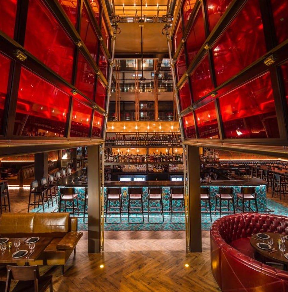 This sleek, modern venue that blends upscale dining with a vibrant, lounge-like atmosphere perfect for high-energy events like the World Cup.