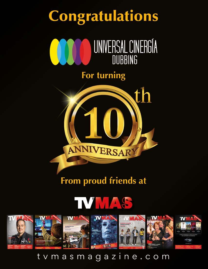 Argentina José Luis Romero Centroamérica Antony Sandy Europa Tjaša Kogej periodista plataforma digital David Sacasa redacción Marcela Herrán Luz Angela Sanabria corrección de estilo y texto Douglas Avilés administración web Esteban Selvaggi marketing Michael Llopis michaeltvmasmagazine@msn.com Kathy Arango kathytvmas@gmail.com traducción Michael Llopis David Sacasa dirección creativa TVMAS diagramación y montaje Gabriel Cancellara impresa en miami Bellak Color Print