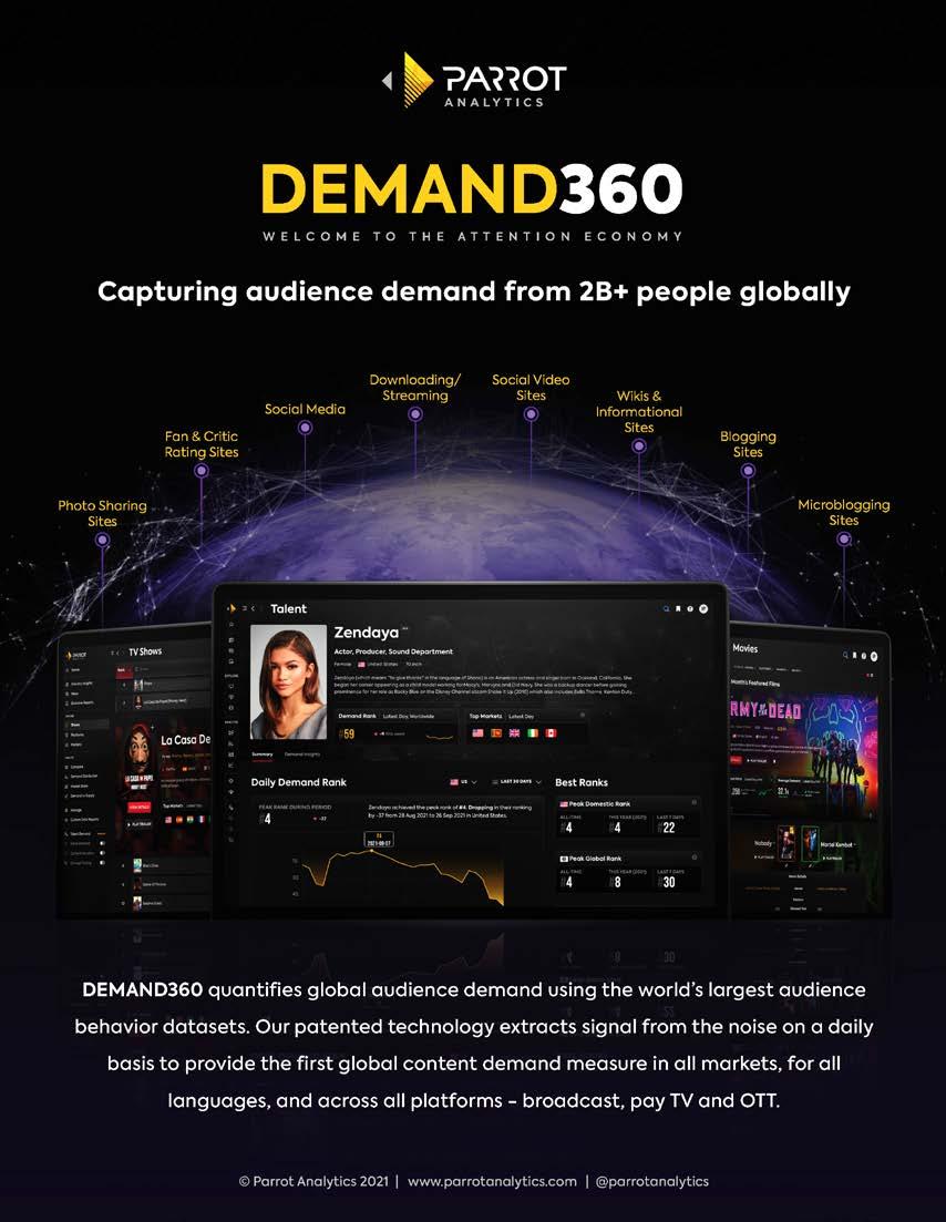 Parrot Analytics is the industry leader in global audience demand measurement, providing the most comprehensive and complete view of audience demand for TV shows, movies, talent, franchises and IP around the world, as well as bespoke strategy and decision support based on global audience demand insights and content revenue valuations.