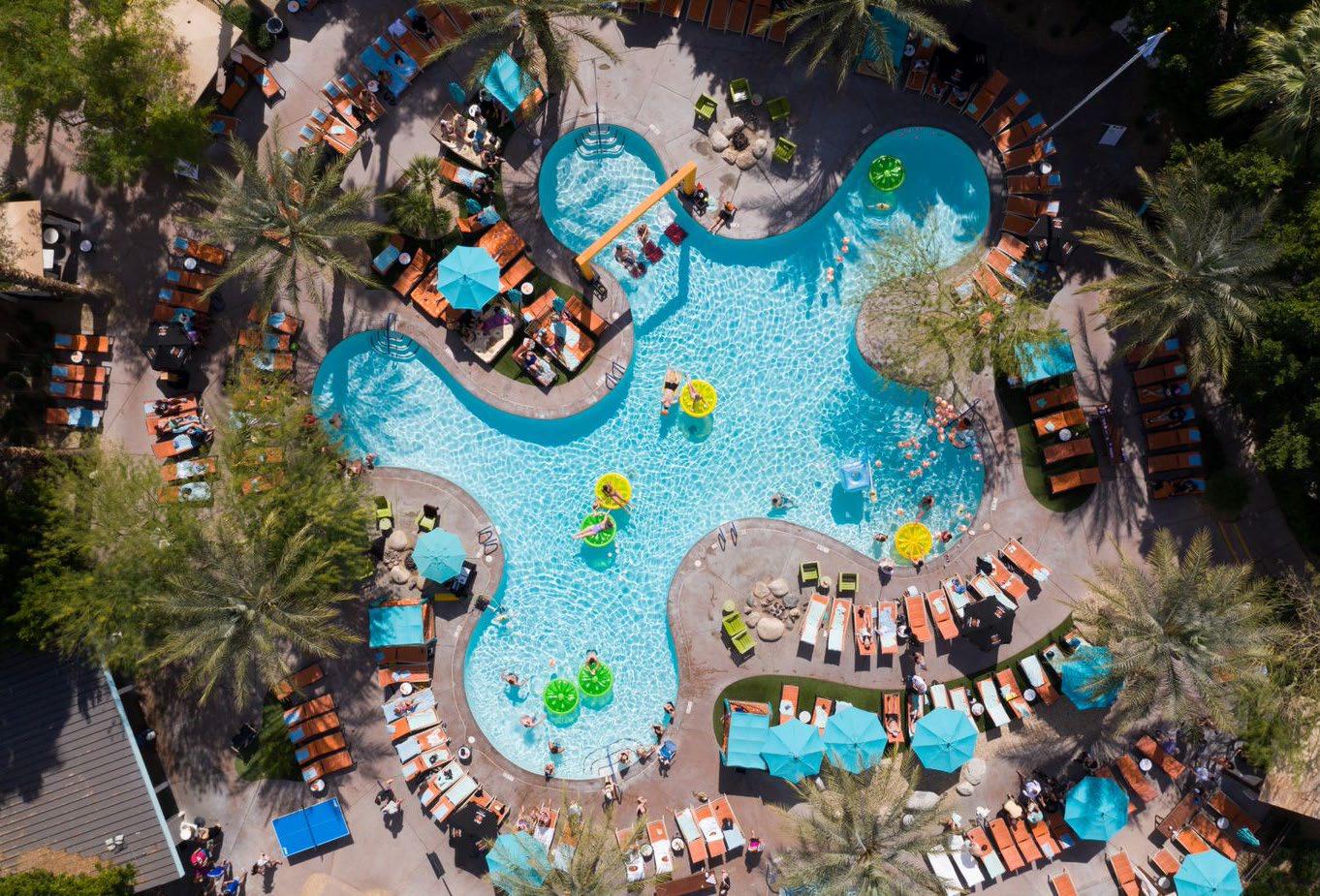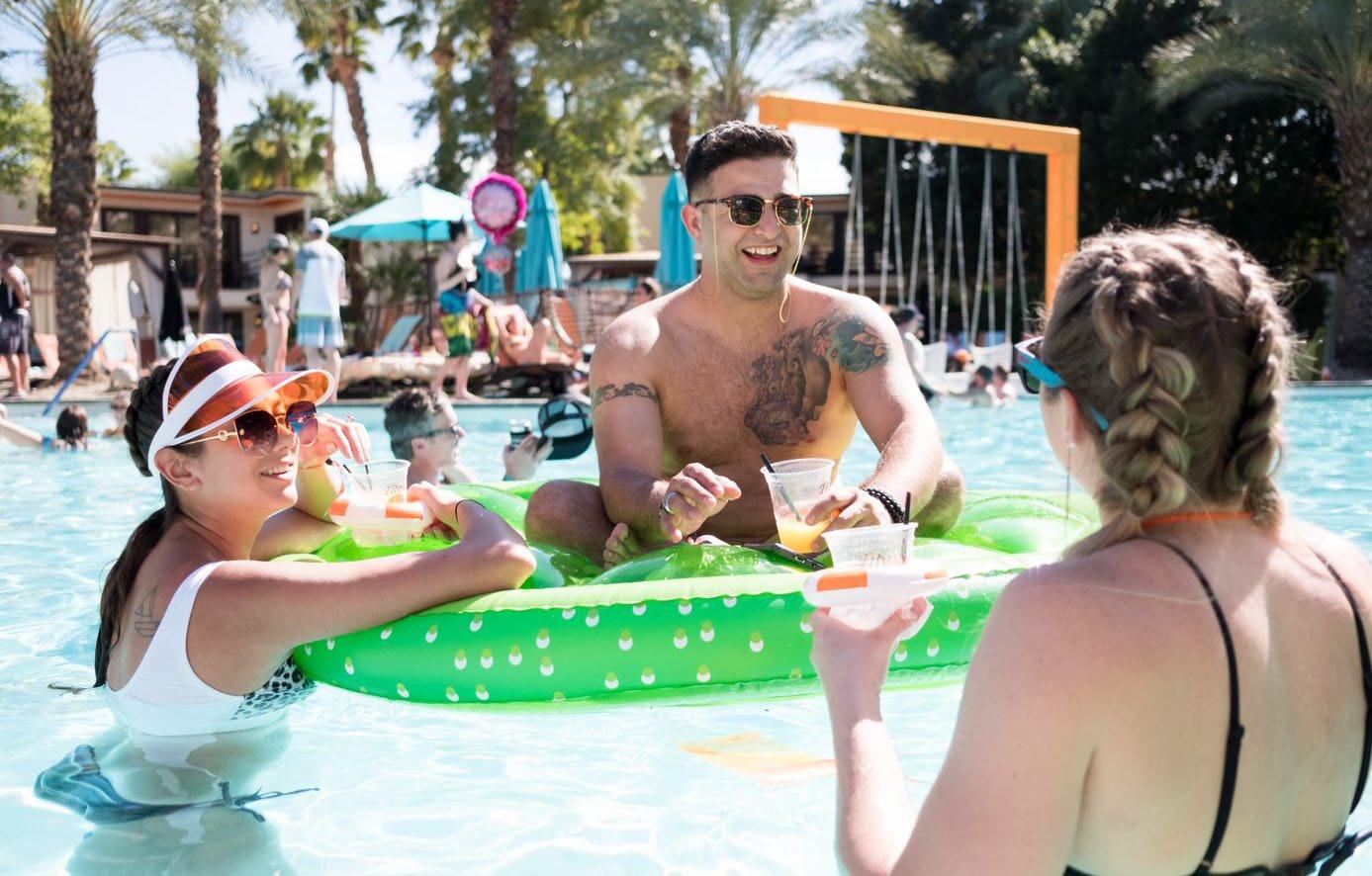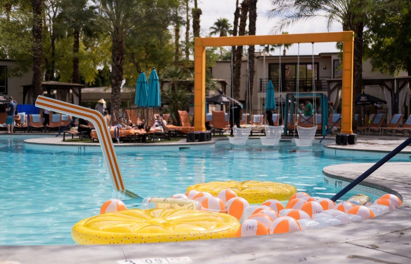 • A lively daytime pool party complete with a custom swing set built over the pool, giant props and activations such as a braid bar, underwater photobooth and barber shop