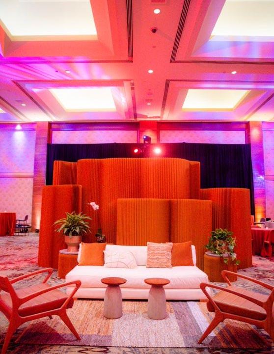 • Design and production of (10) total unique spaces ranging from hospitality suites to unique seating for the general session to construction of custom structures for evening events.