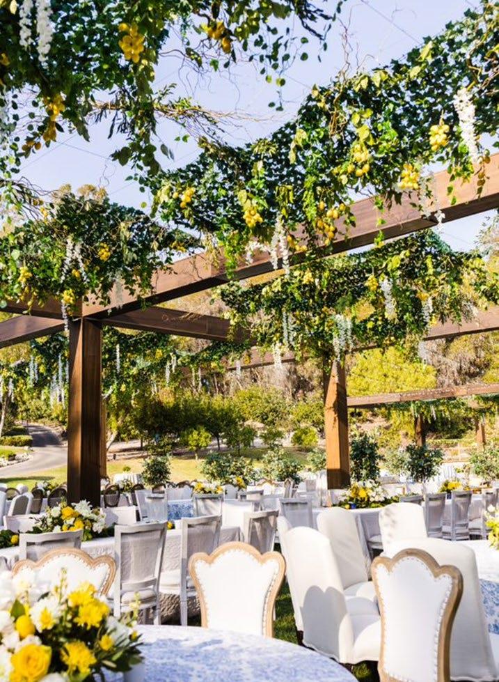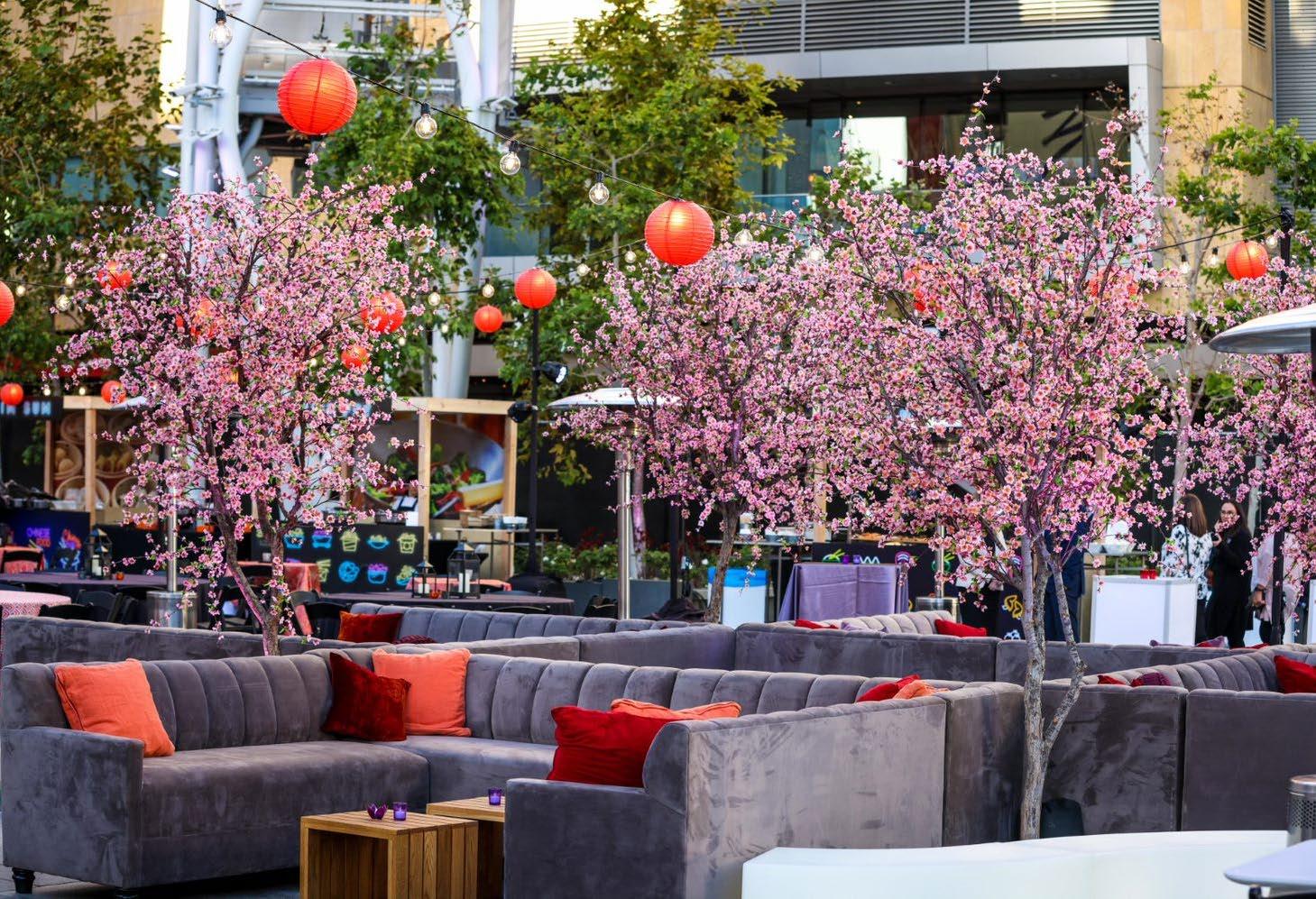 • Styling of the space including towering cherry trees, glowing lanterns, and contemporary seating