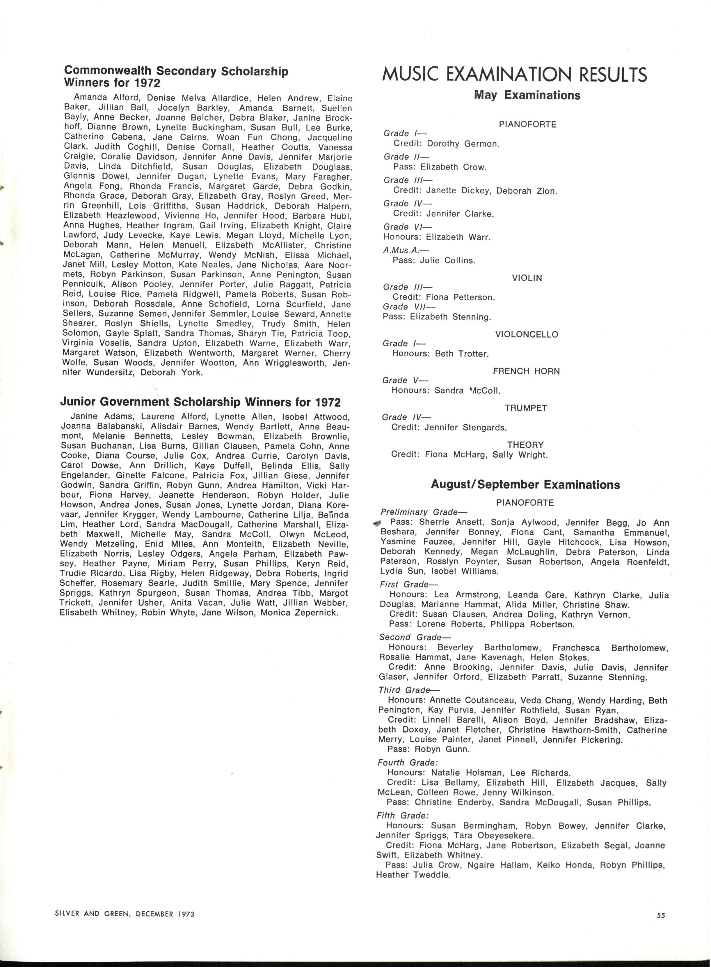 1973 Music Theoretical September Examination Results