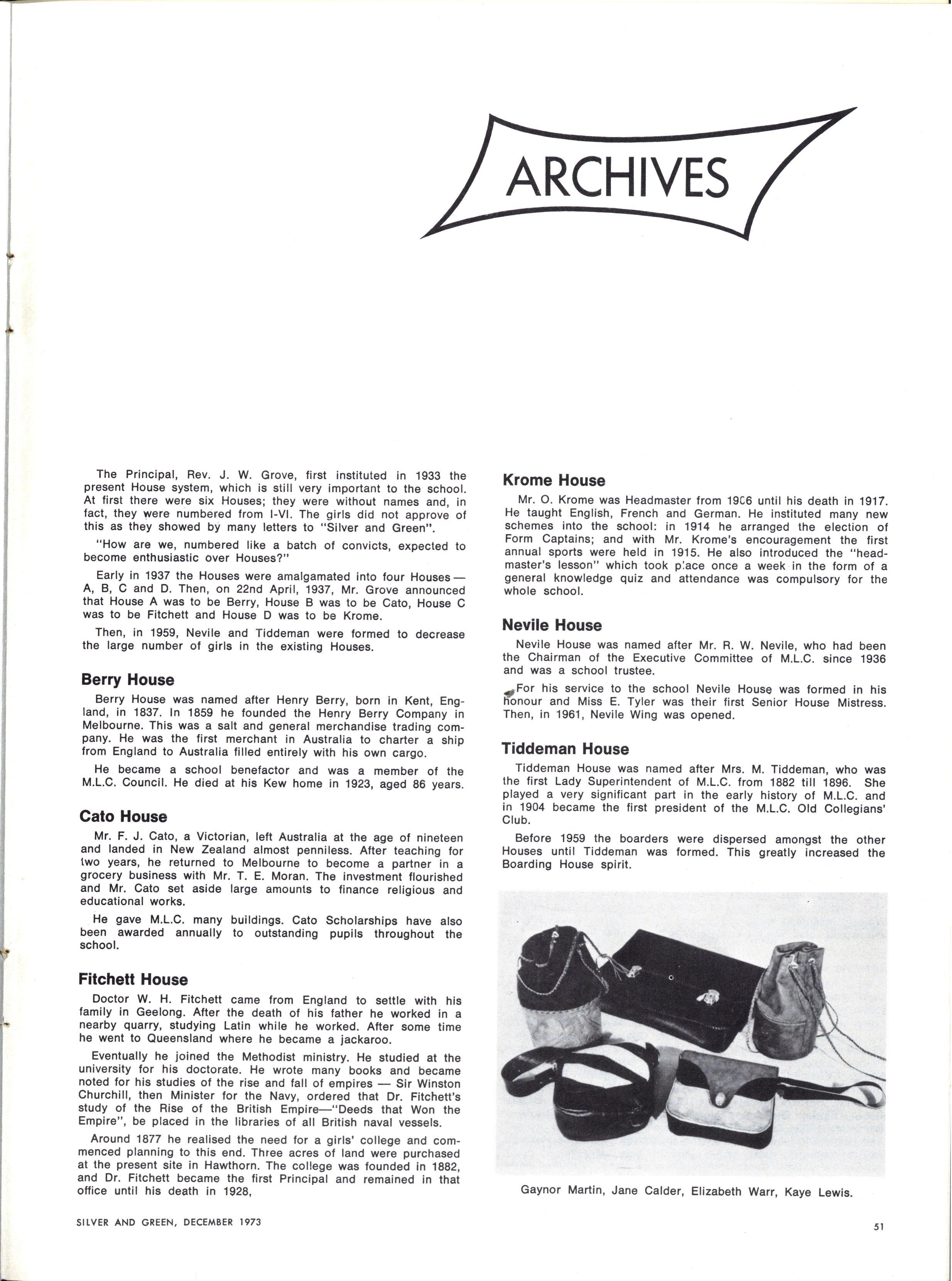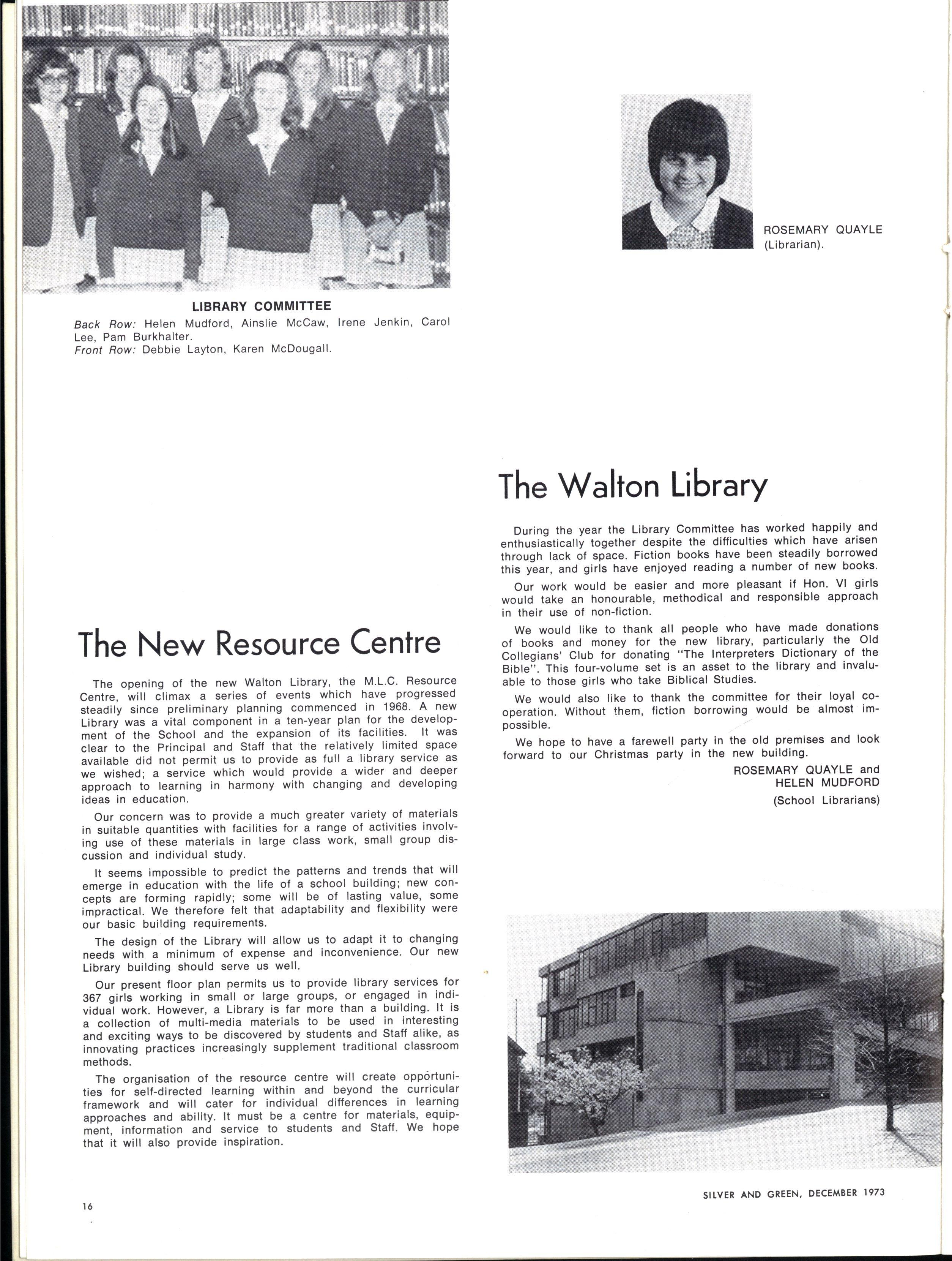 The College Council has appointed Miss Betty Jackson, B.Sc., Dip.Ed., to the position of Vice-Principal commencing in 1974 Miss Jackson has been a teacher at M.L.C for twenty-eight years She has been Senior Biology Teacher for many years and at present she is Senior Mistress at Form VI level Miss Jackson brings professional competence and devotion to the ideals of M.L.C. to her task and we are sure that she will make a distinctive contribution to the life and work of our College.