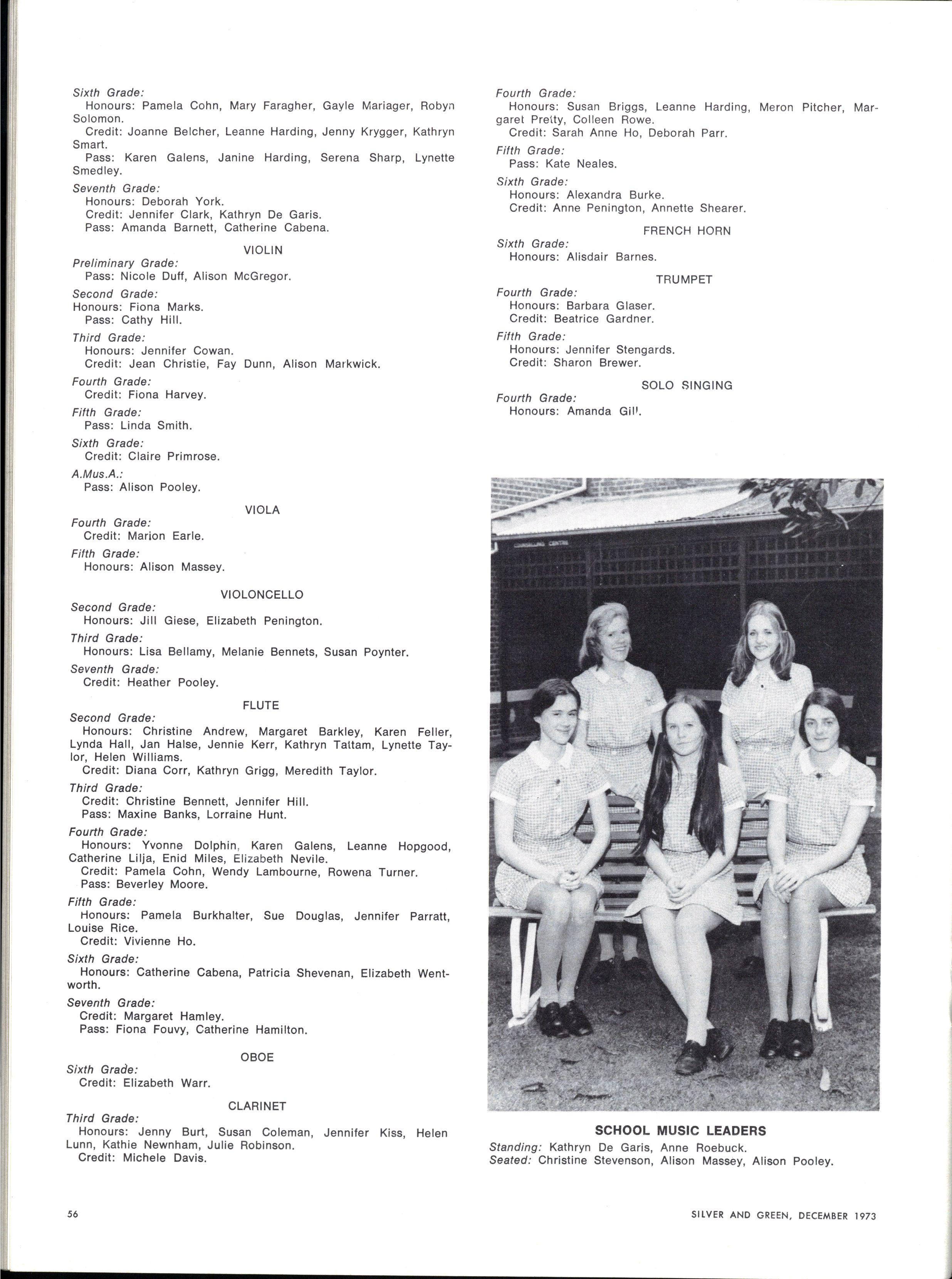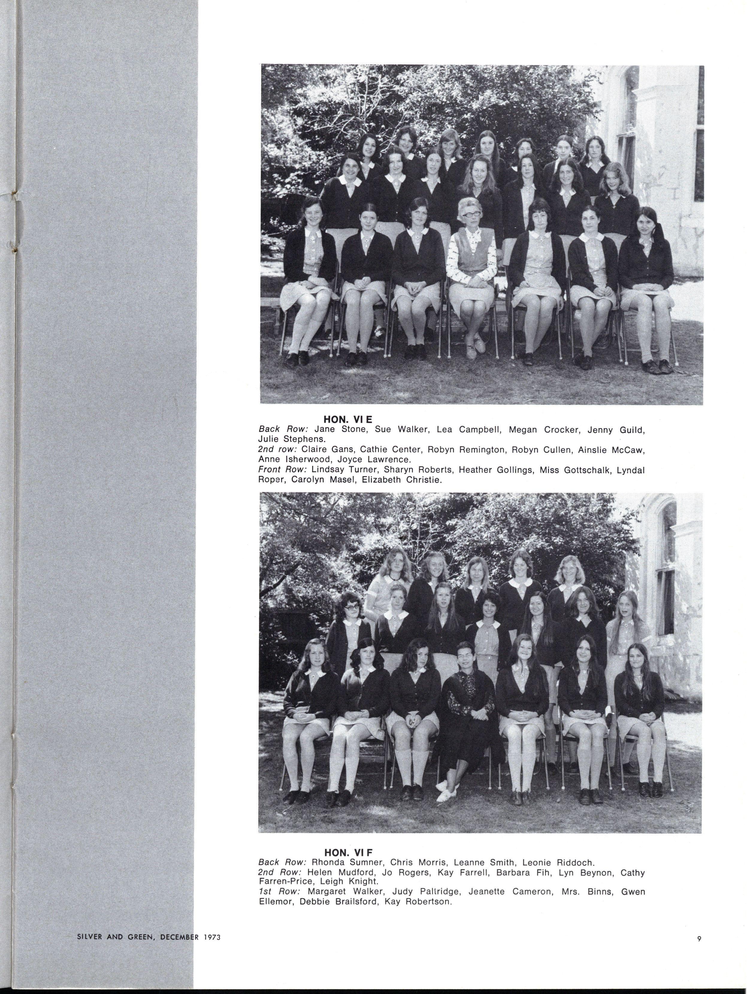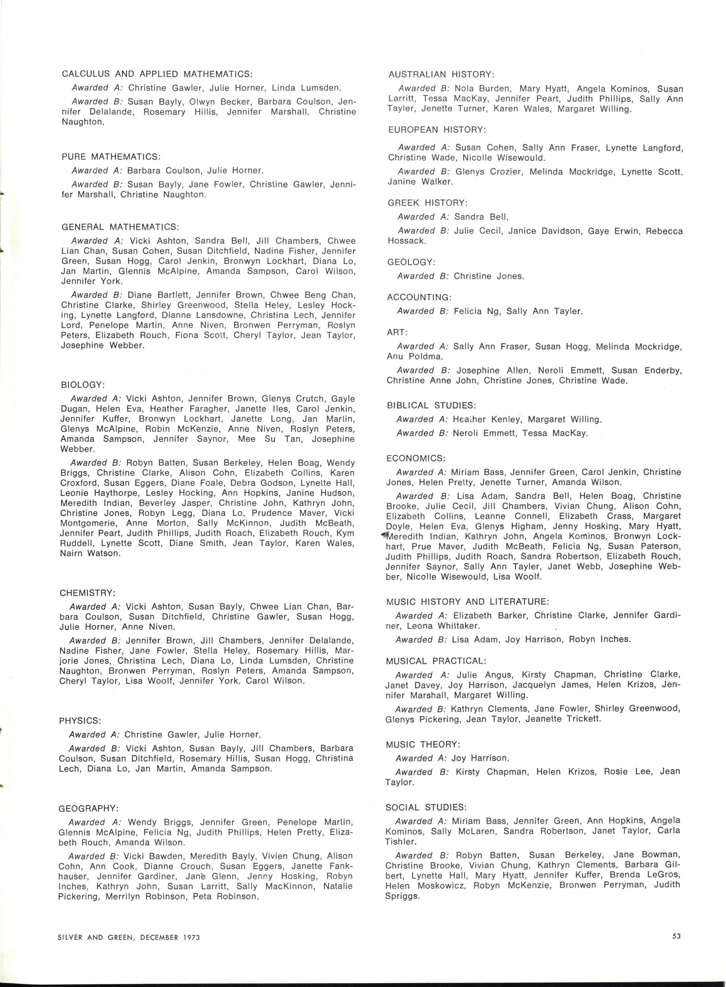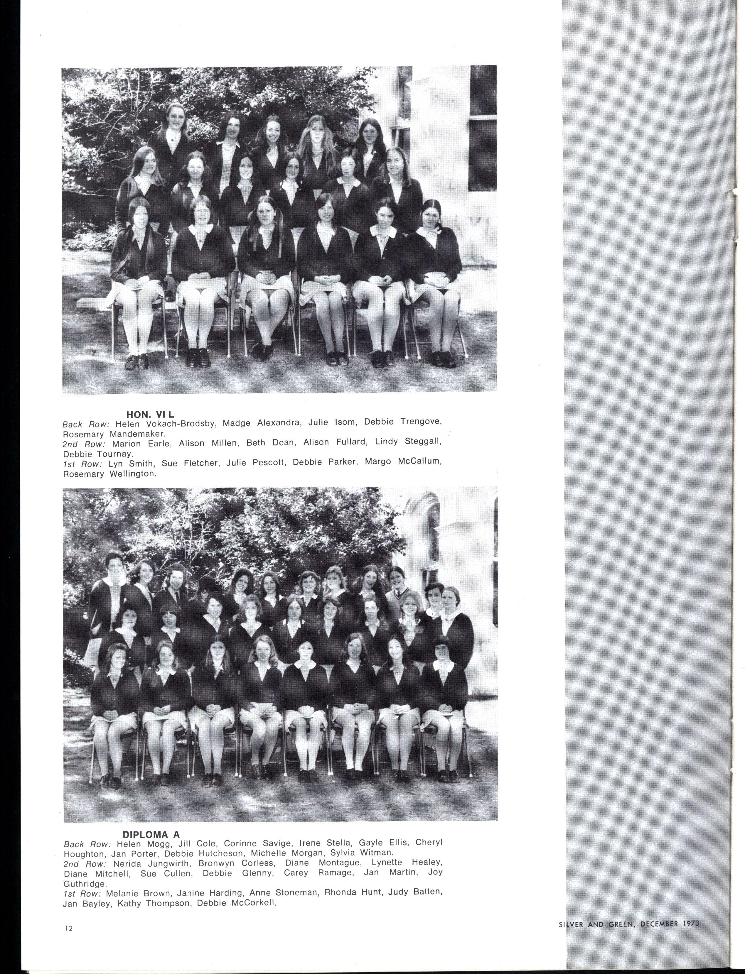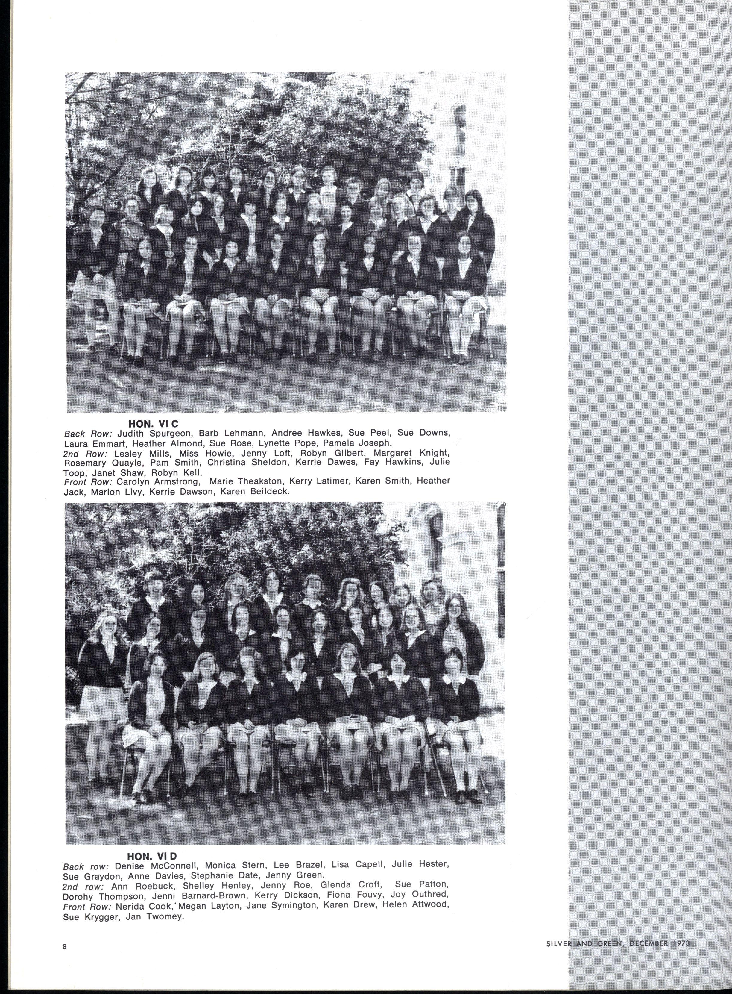 Honours: Linnell Barelli, Elizabeth Bennett, Janet Briggs, Jennifer Bradshaw, Jean Christie, Susa n Coleman, Elizabeth Doxey, Janet Fletcher, Caroline Fry, Lynda Hall, Rosemary Harriss , Robyn Keller Wendy Lambourne Susa n Lyons Elizabeth Nevile Deborah Parr Janet Pinnell Elizabeth Segal Paula Troup Jan Yeoman Jennie Kerr