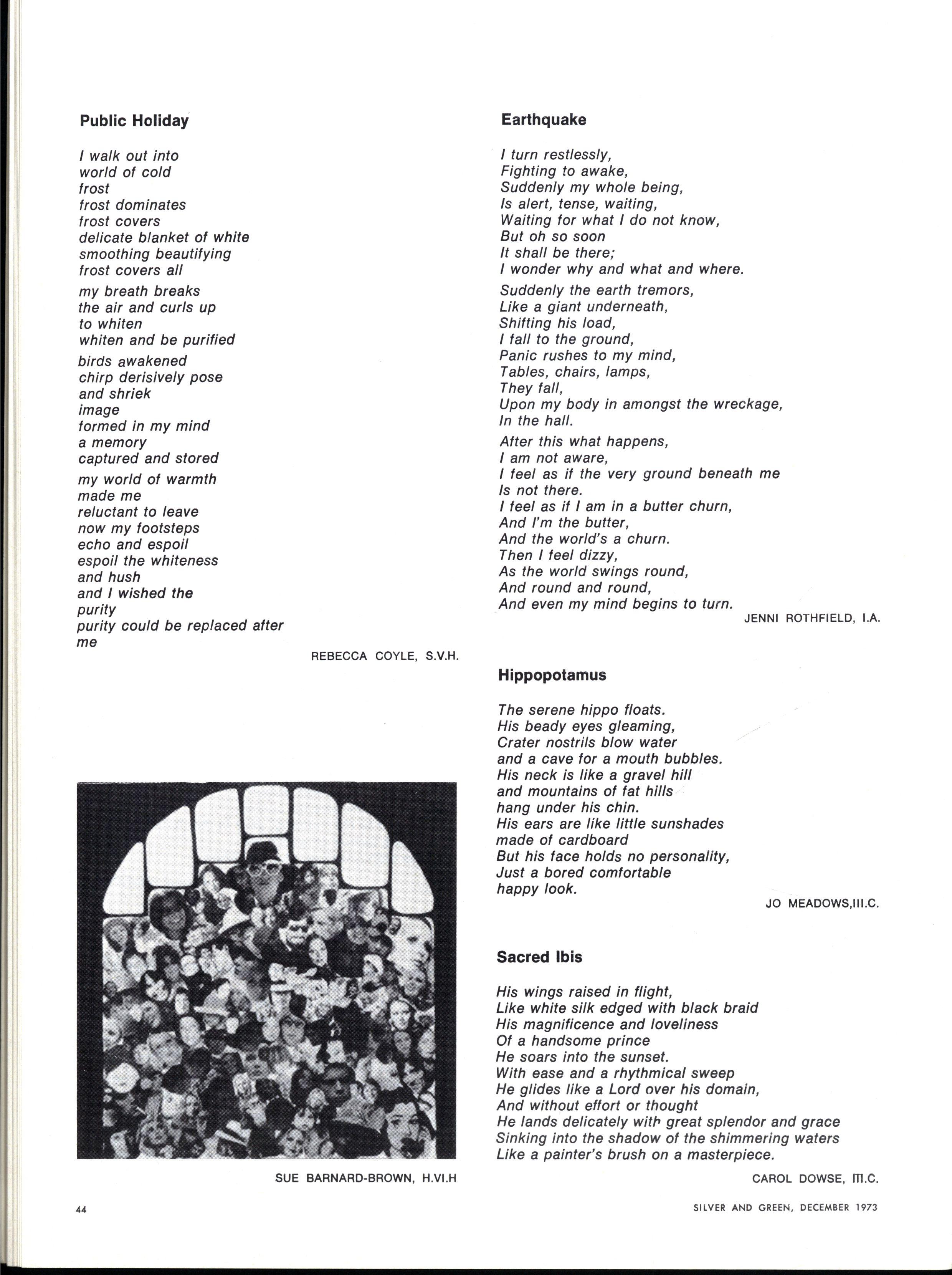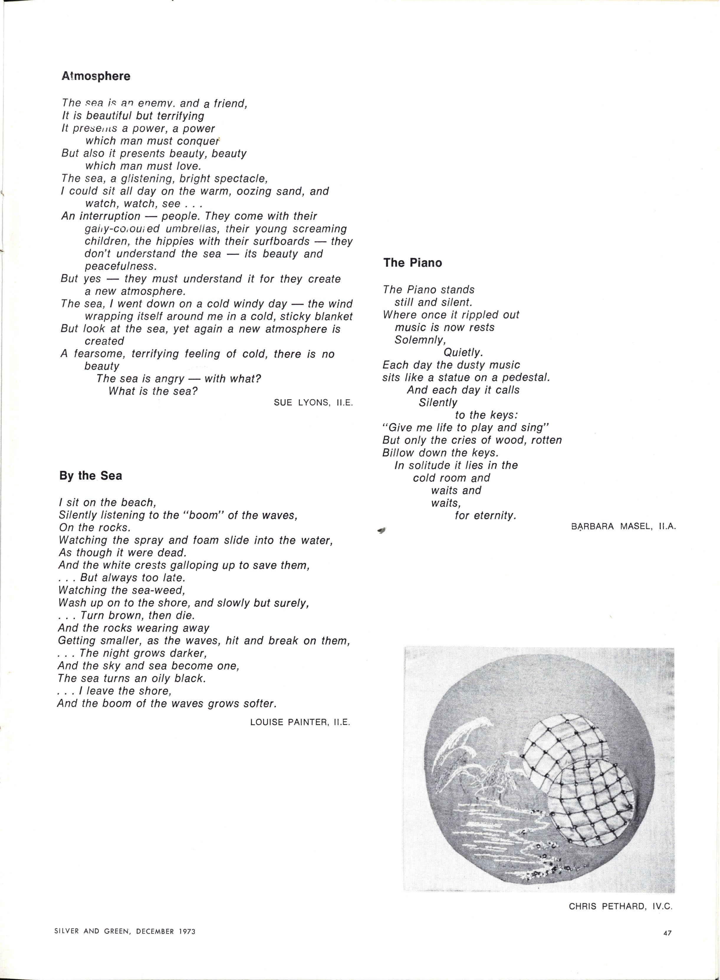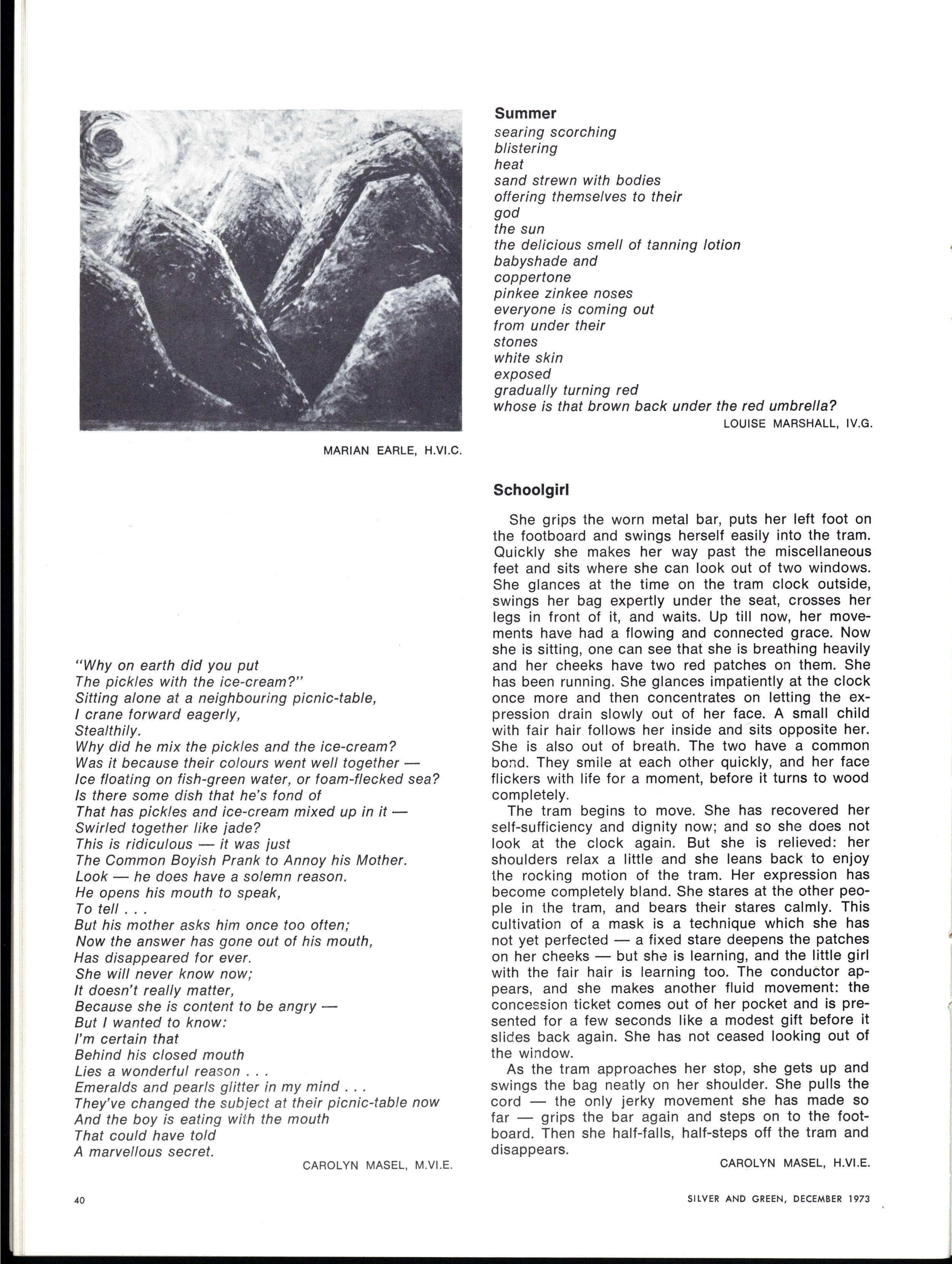 This year "Silver and Green" met with competition "Ludus" appeared on the market! With relief, we note that "Silver and Green" beats the newspaper in the price war. But with terror, we saw "Ludus" invade our territories of letters to the Editor, photography, humour, and even encroach on the sacred domain of the magazine, poetry