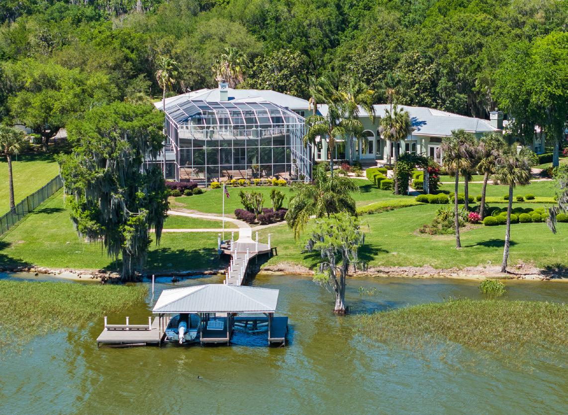boat ramp for additional ease. Explore the charming downtowns of Leesburg and nearby Mount Dora. Immerse yourself in the vibrant atmosphere of The Villages, and enjoy convenient access to UF Health & Advent Health, golf courses, and sports complexes. A myriad of shopping and dining options along US Hwy 441 await, and Leesburg International Airport is just a short drive away. Disney and Orlando International Airport are both within an hour’s reach, making this estate the epitome of tranquility and convenience.