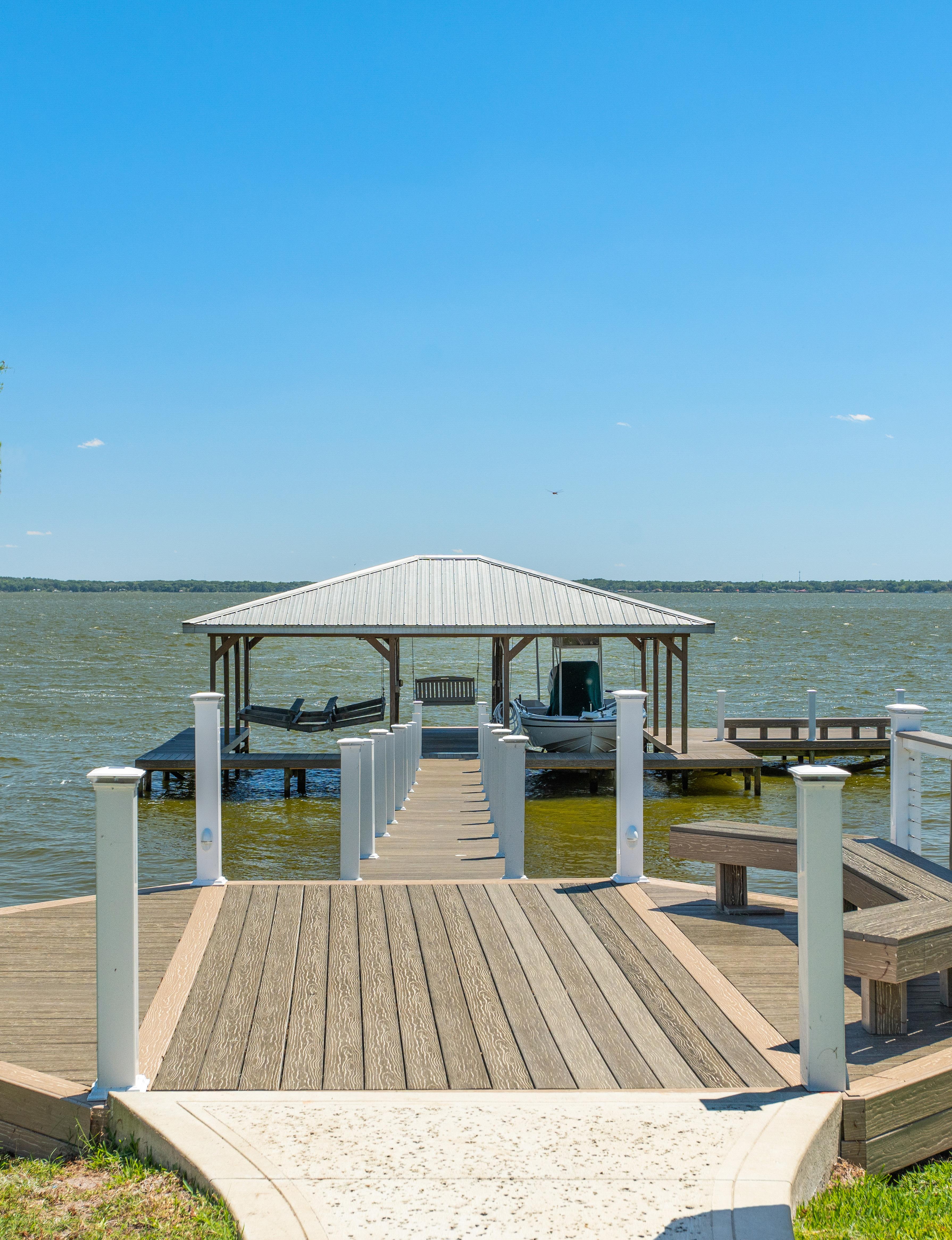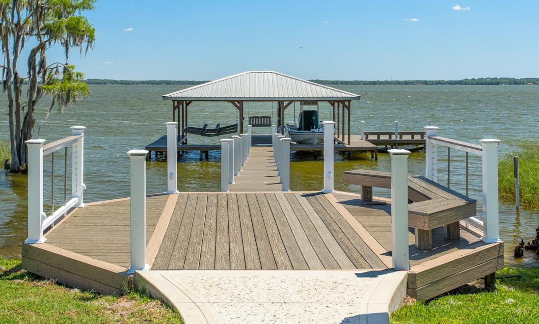 abundance of natural light, framing the tranquil water vistas. Embrace the epitome of outdoor living that caters to both relaxation as well as formal entertaining. Your private backyard oasis awaits, complete with a serene walking path leading down to your personal firepit area and composite dock and boathouse, equipped with two lifts. Indoors, the thoughtfully designed floorplan offers a myriad of living spaces for everyone to enjoy. The open chef’s kitchen and dining areas provide the perfect setting for hosting unforgettable gatherings, seamlessly flowing into the massive pool area. Discover additional living spaces, including a dedicated homework station, a first-floor game room, and an office boasting custom wood details. Each bedroom hosts its own luxurious ensuite, while the versatile room above the garage can be transformed from a movie theater to guest quarters, home gym, or any flex space desired. Nestled within the renowned Harris Chain of Lakes in Central Florida, this exclusive retreat offers an unparalleled sense of seclusion while remaining mere minutes from a wealth of amenities including access to a public dock and
