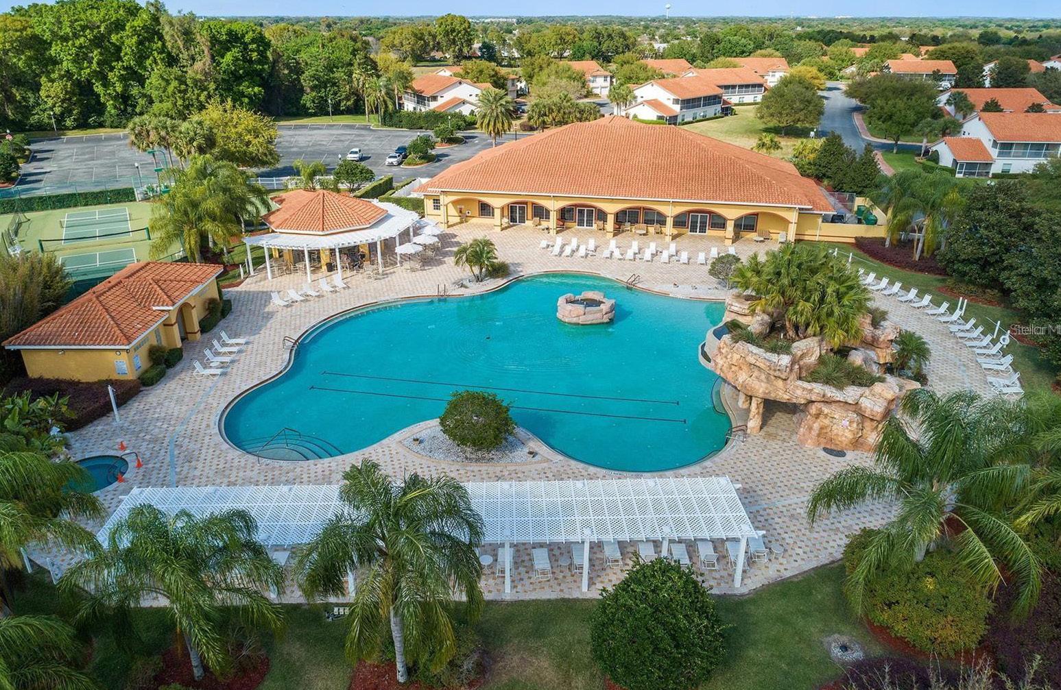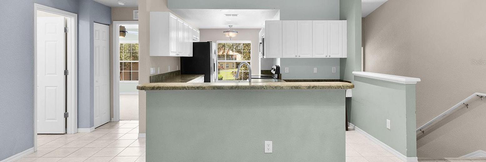 an open-concept floor plan that seamlessly connects the kitchen, dining, and spacious living area. The upgraded GE Profile kitchen appliances, abundant cabinetry, and adjacent office/laundry room (washer/ dryer included) add practicality and convenience. The primary bedroom features vaulted ceilings, an upgraded ceiling fan, and a luxurious en-suite bath with dual vanities, a tiled walk-in shower, and a walkin closet with custom shelving. A double sliding glass door leads to your screened-in patio, ideal for morning coffee or sunset relaxation. Additional highlights include: Stucco exterior and durable tile roof Paver driveway and sidewalks Oversized 1-car garage with a large storage closet Brand-new Carrier A/C unit and hi-tech LiftMaster silent garage door (2024) HOAcovered exterior maintenance, landscaping, lawn care, and pest control—stress-free living year-round! Lakeside Landing offers gated security and resortstyle amenities, including: A stunning clubhouse with ballroom and billiards room Two resort-style pools Fitness center, daily exercise classes & community events Tennis and pickleball courts, basketball court, playground, and dog park Access to Lake Miona, a beautiful ski lake with great fishing Golf cart access to The Villages, shopping, dining, and nightly live entertainment Whether you’re looking for a full-time residence, winter retreat, or a low-maintenance investment, this condo delivers on lifestyle, location, and value.