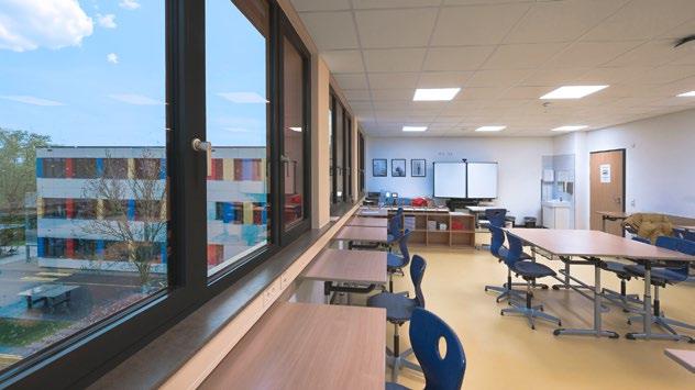 lung und mechanischer Beanspruchung – ein relevanter Aspekt für den Bau von Bildungseinrichtungen. „Da die Aufstockung der Janusz-Korczak-Förderschule von Anfang an eingeplant war, benötigten wir ein Fassadenmaterial, das sich auch Jahre später ohne Form- und Farbabweichungen ergänzen lässt“, sagt Matthias Bickel, Vertriebsleiter Mitte bei Kleusberg. Verantwortlich für diese Oberflächenbeständigkeit ist eine besonders dichte und geschlossene Struktur, die durch eine spezielle Elektronenstrahlhärtung entsteht.