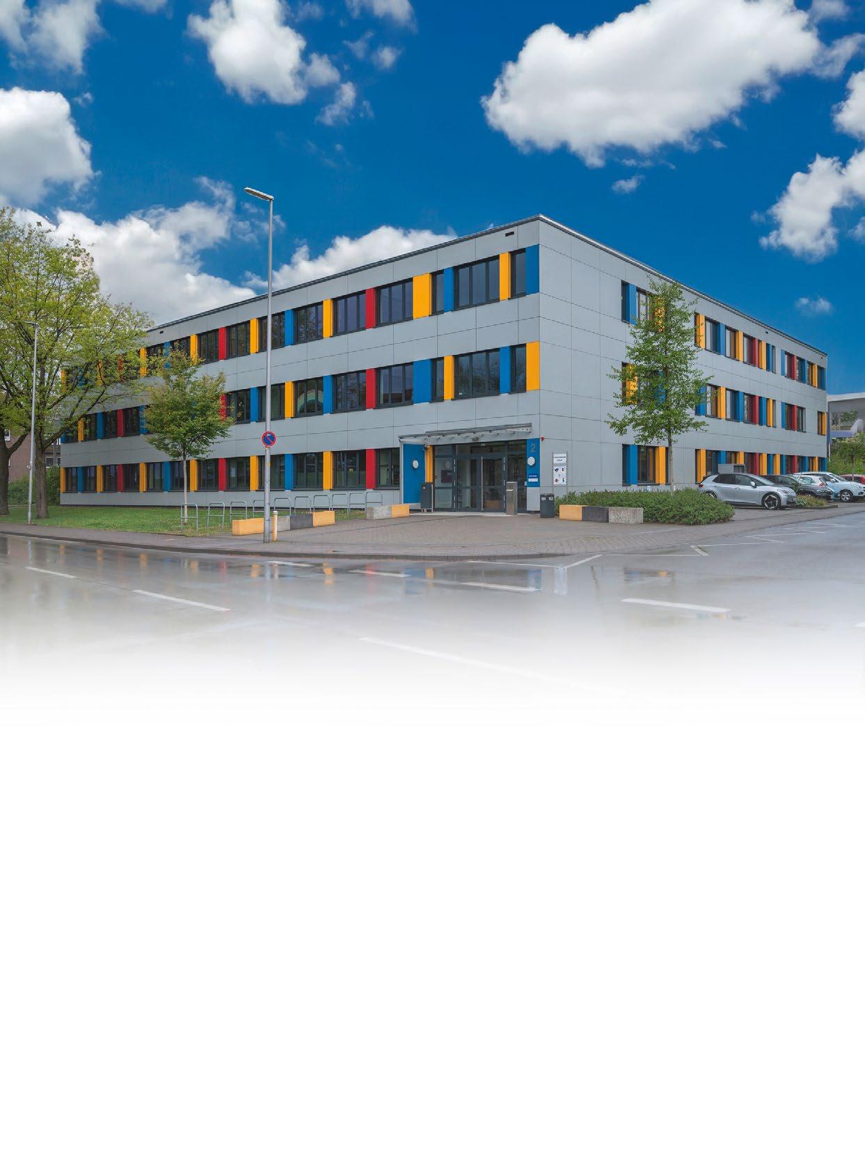 Freundliche Fassadenfarben und helle Innenräume schaffen ein angenehmes Lernklima.