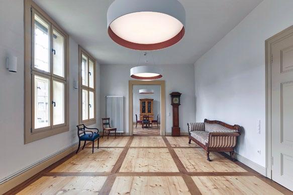 Kramp & Kramp führte auch die umfangreichen Restaurierungen an Wandvertäfelungen, Dielenböden und Holzbalkendecken aus sowie alle Maurerarbeiten.