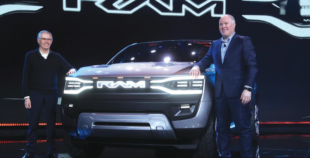 Mike Koval, Ram Brand CEO, introduced the Ram 1500 Revolution battery-electric pickup truck concept— an EV vehicle that gives truck fans a vision of what Ram’s production model could offer when it launches in 2024. Some of the standout features include removable thirdrow jump seats, an electro-chromatic glass roof that has adjustable levels of opaqueness and the ability to haul materials inside the truck up to 18 feet in length with the tailgate closed. The Ram Revolution takes a bold step forward into the somewhat crowded arena of EV trucks to come over the next few years.