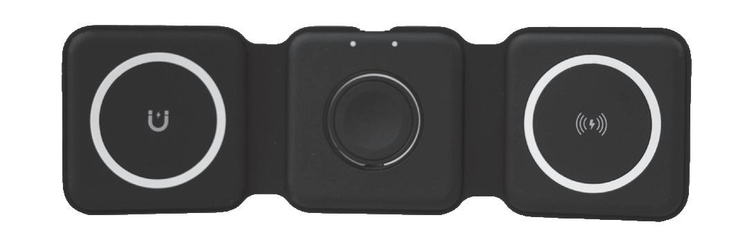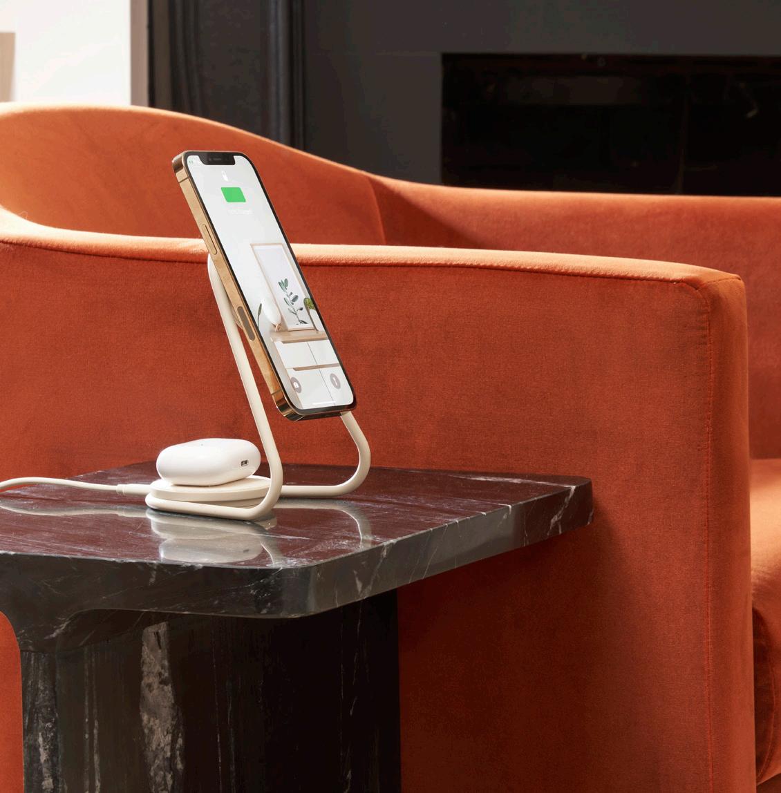 magnetically snap your iPhone® on the charging stand and place your wireless charging AirPods® on the base