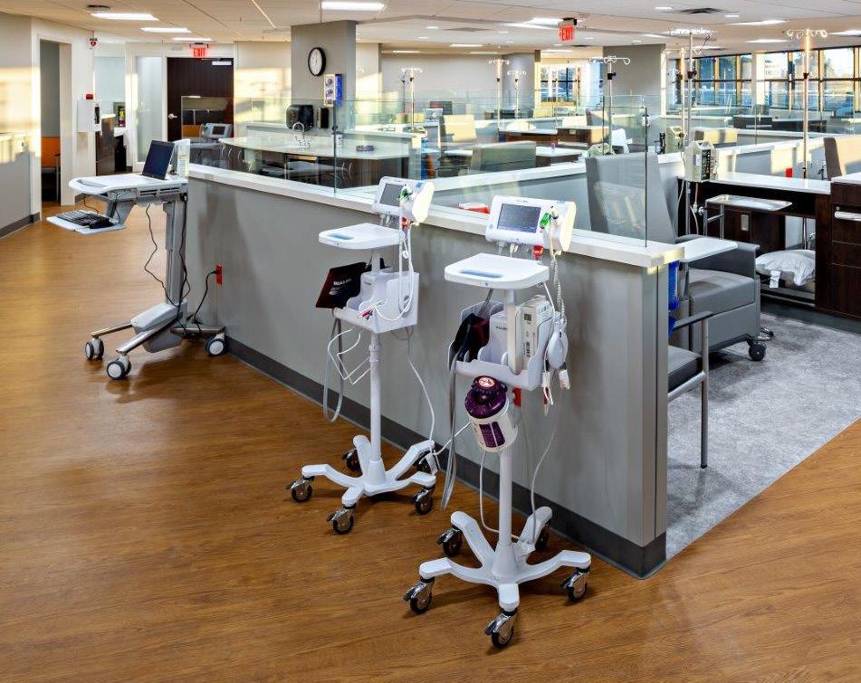 This one-of-a-kind medical facility was designed to provide an immersive entertainment experience for pediatric oncology patients as they undergo infusion treatments. A design theme of outer space was leveraged in appeal to both children and teens, incorporating the design of a large galaxy printed wall, star embossed ceiling tiles and the latest in gaming technology.