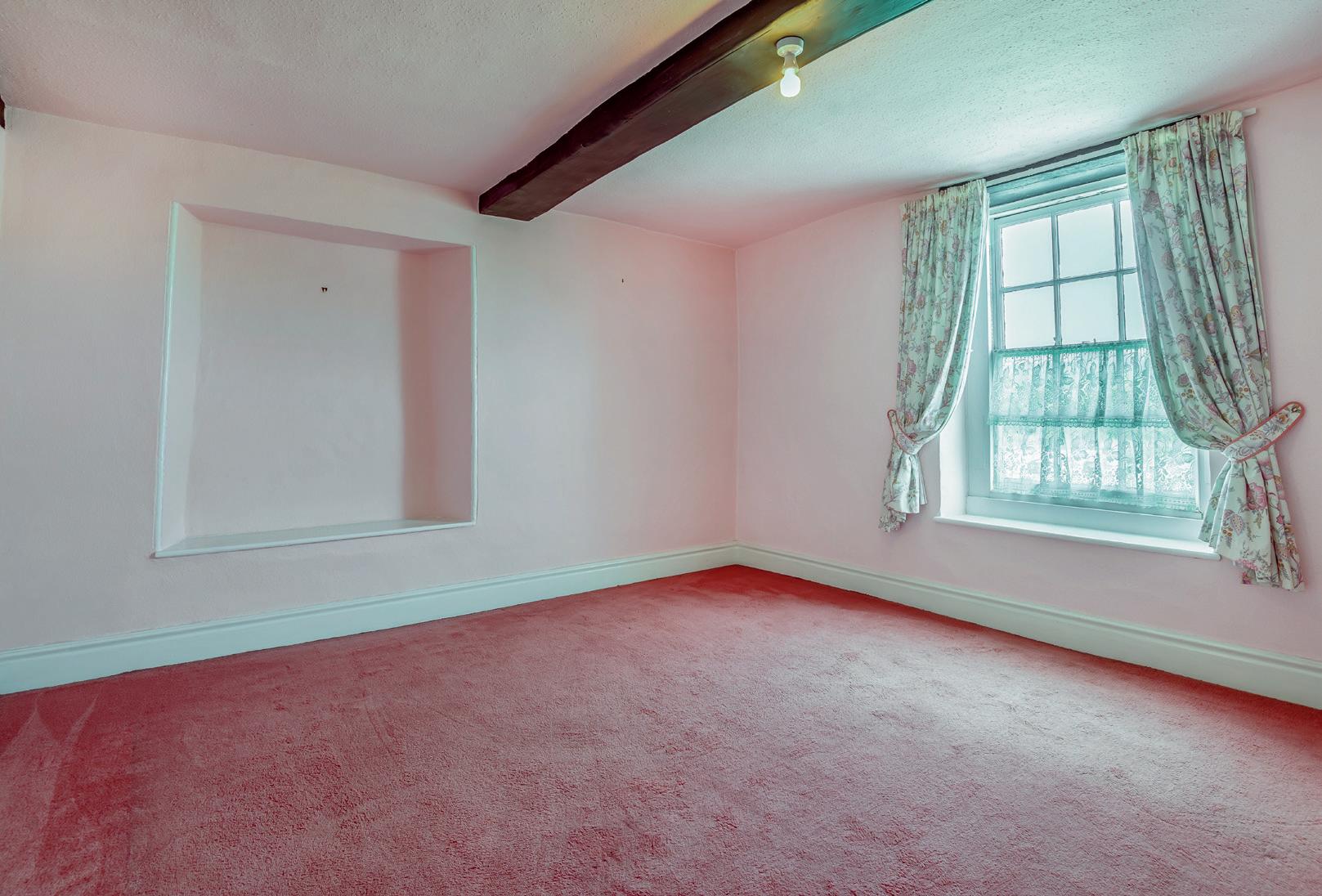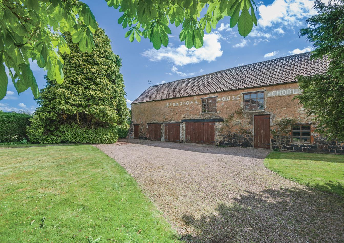 A gated entrance leads to a meticulously maintained lawn, centred around a beautiful mature tree, with colourful, established flower borders lining the edges. Ample off-road parking is available in front of an impressive detached barn, still bearing the name “Broad House School” on its facade. The barn was granted planning permission in 2011 for conversion into a holiday let, though this permission has since lapsed.