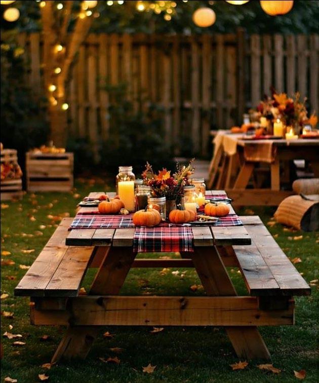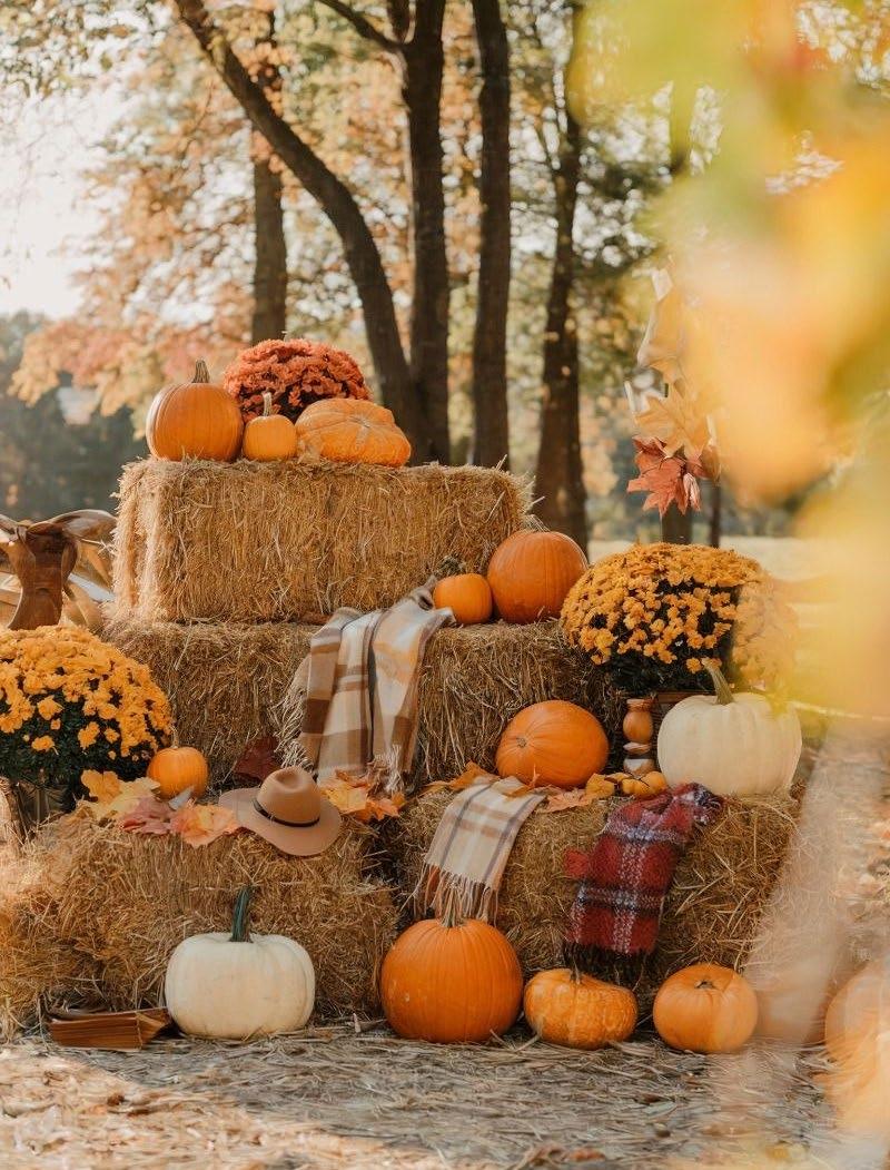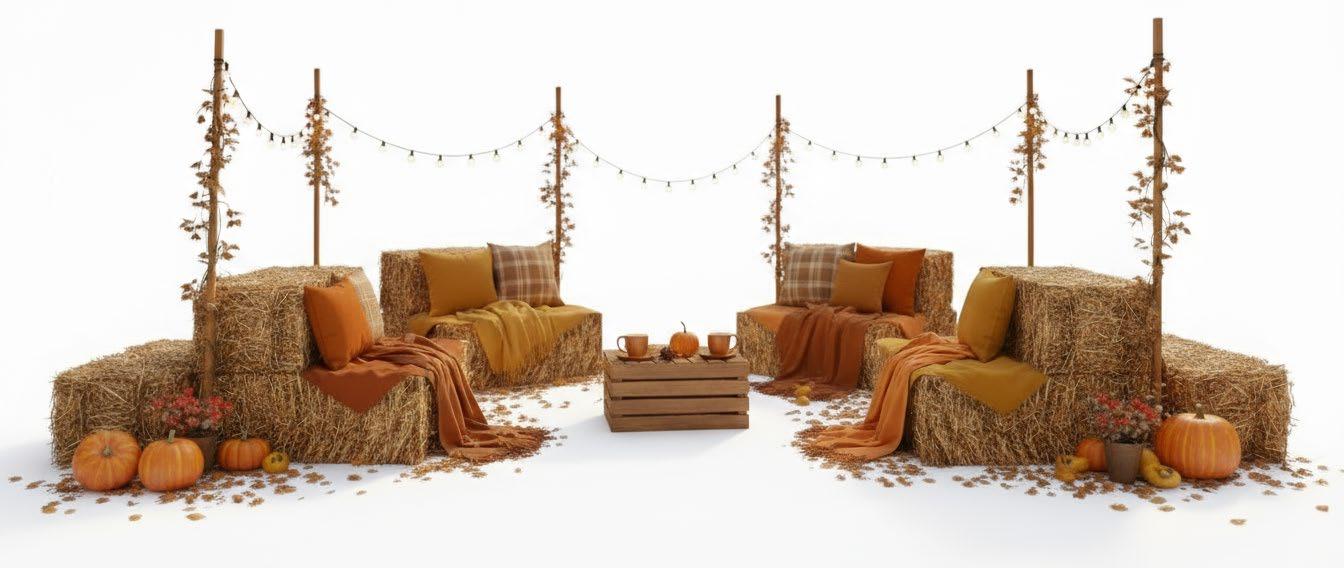 Nothing says autumn like a cozy fall festival. With rustic signs, hay bales, golden leaves, and glowing fairy lights, the space radiates vintage charm and seasonal magic