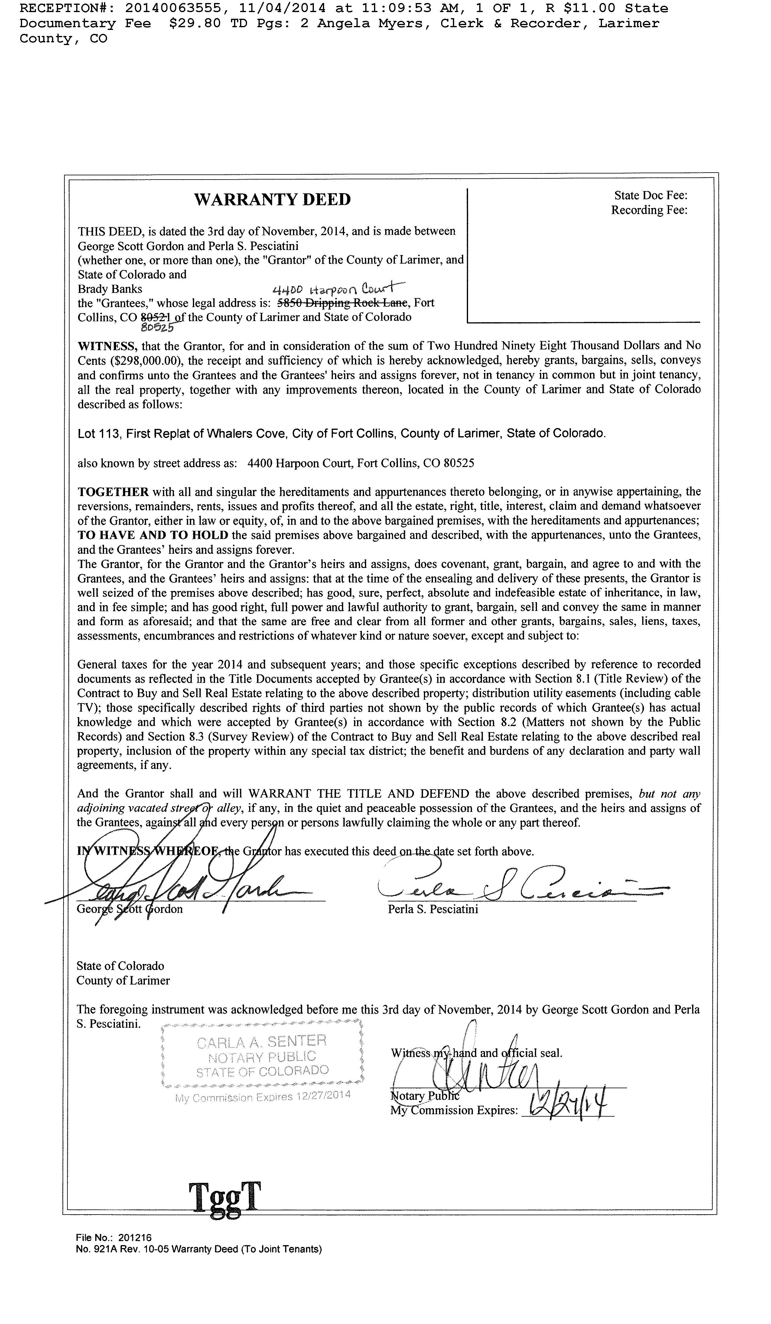 Deed Type : Warranty Deed