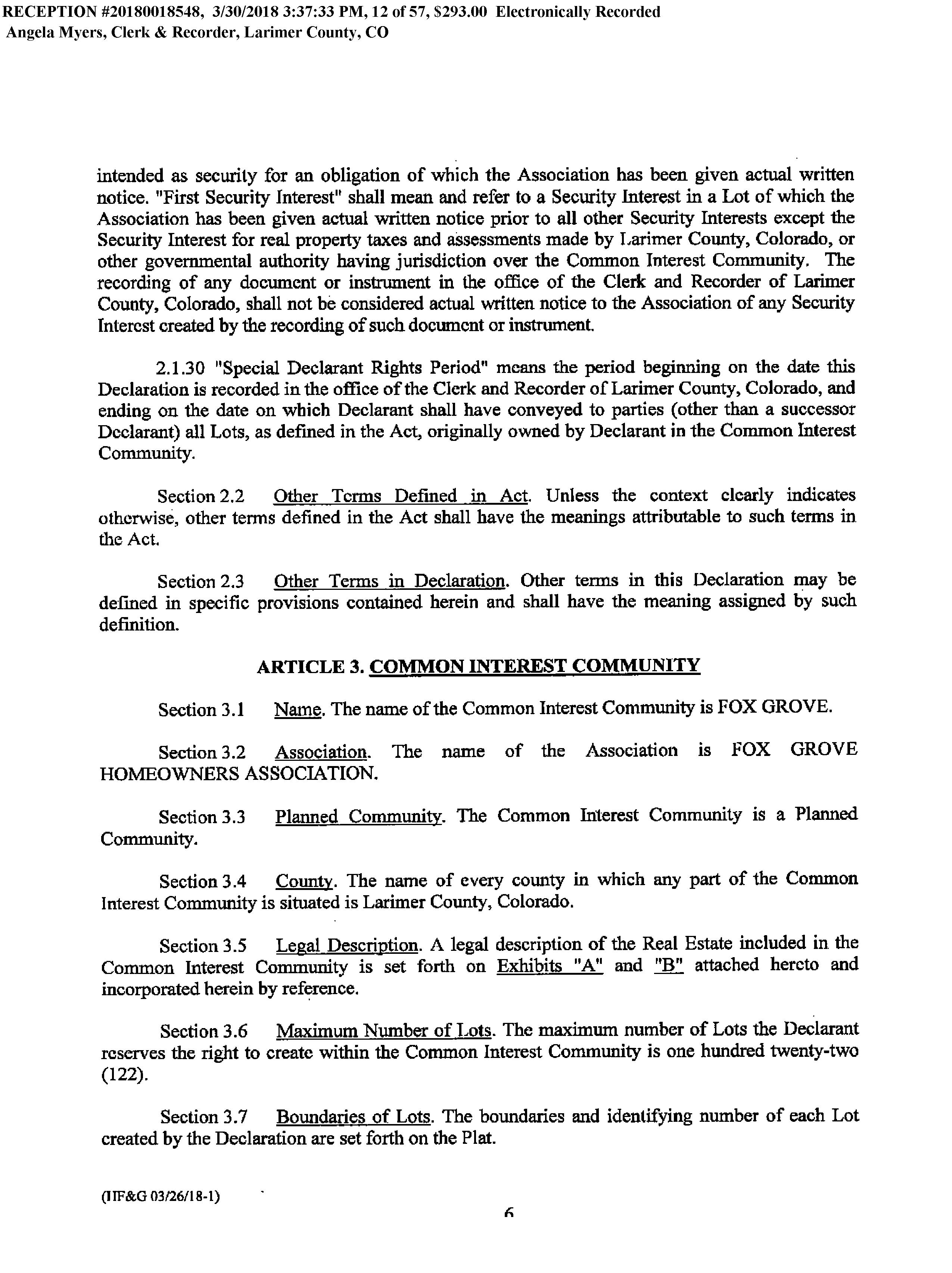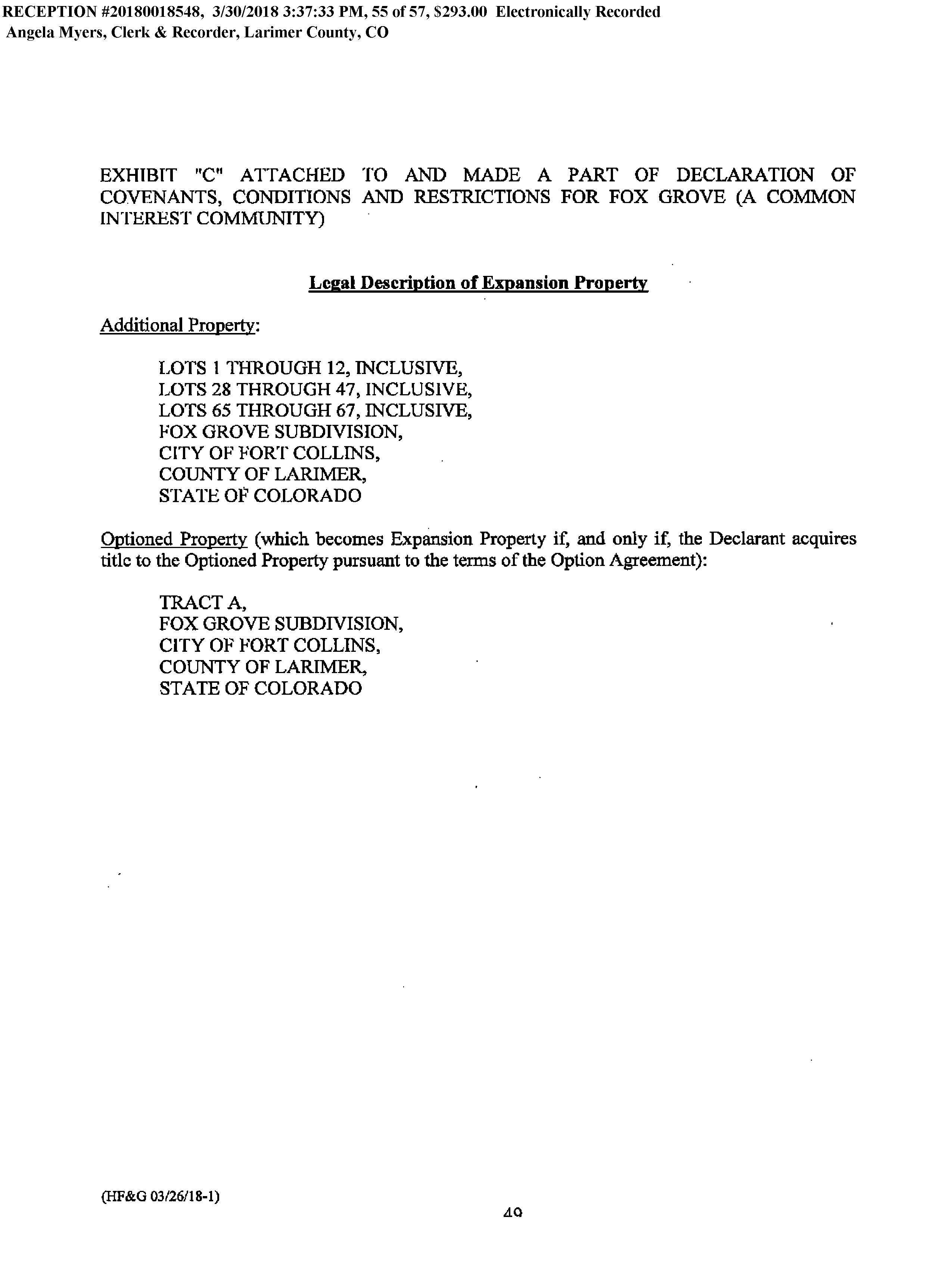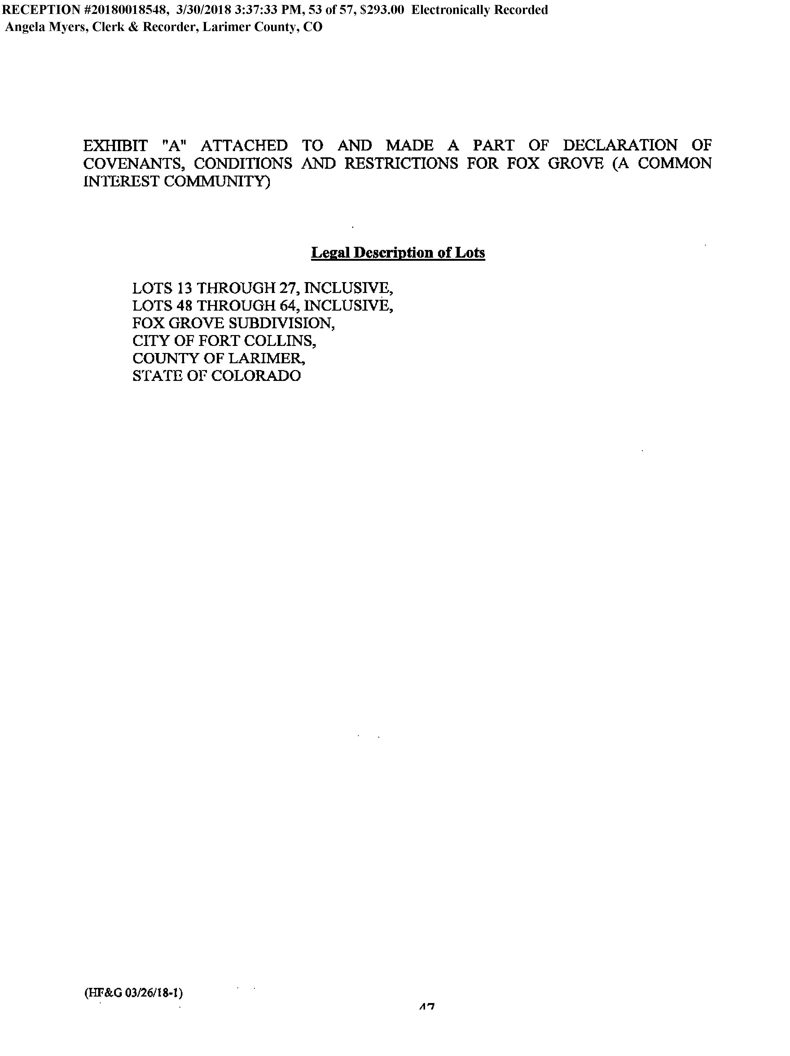 Legal Description : Lot 18, Fox Grove Sub, Ftc (20170029883)