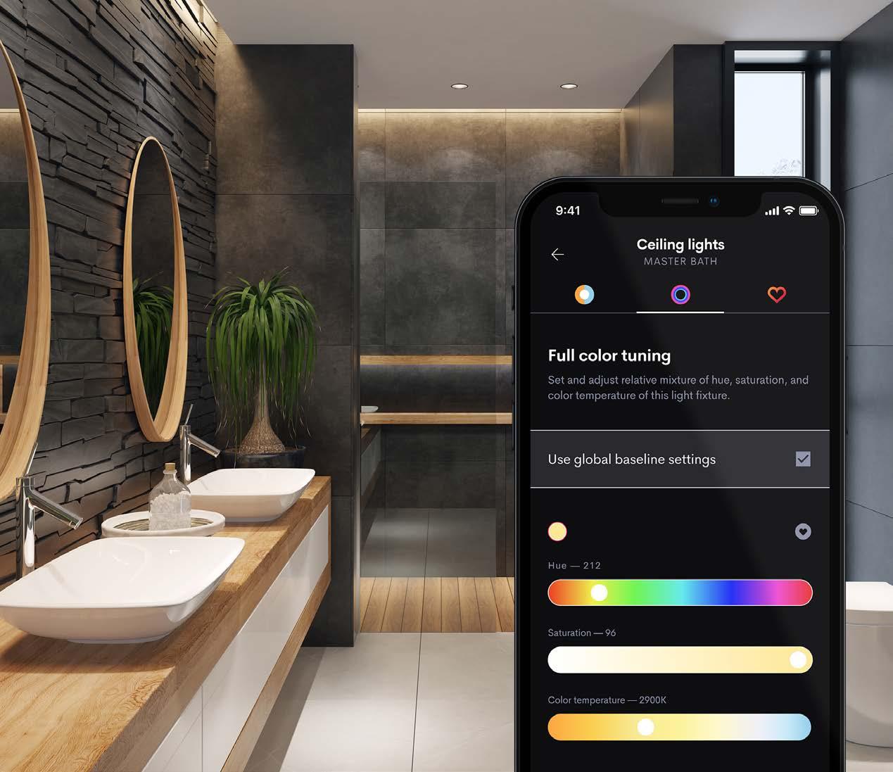 can seamlessly switch from human centric lighting to party lighting for example in one press. Also having the ability to tune the col or of lights for scene-setting is simple, easy to control, and manage, taking away some of the pressure on the home tech profes sional to always be on call.