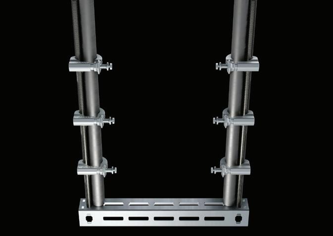 ▲ THE TECLOC CONDUIT CLAW is for seismic stiffening within Mechanical, Electrical, & Plumbing (MEP) applications. This rod stiffener is a fast and secure, IAPMO-approved seismic rod stiffening clip, designed to be quickly installed using pipe or conduit to secure suspended services and prevent buckling in seismic conditions in a variety of MEP system applications. It has been specifically engineered to be retrofittable, allowing it to be installed after services are fully suspended.