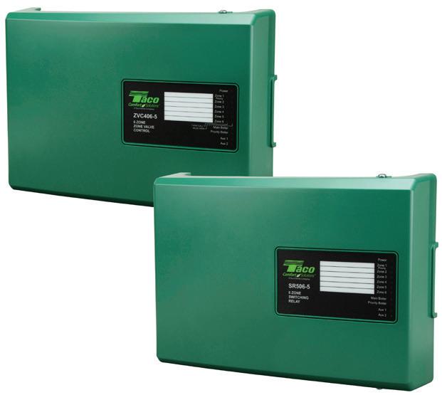 CONTROLS from Taco feature easy-to-read diagnostic lights for all outputs, including zones, boilers and auxiliary connections, ensuring quick troubleshooting with minimal downtime; simple wiring and grounding options that streamline installation, reduce setup time and make the process hassle-free for installers; Smart Plus Logic for DHW recirculation optimizes hot water delivery with advanced logic that improves both efficiency and comfort; and post-purge and pump exercise functions that ensure the system operates at peak performance while extending its lifespan.