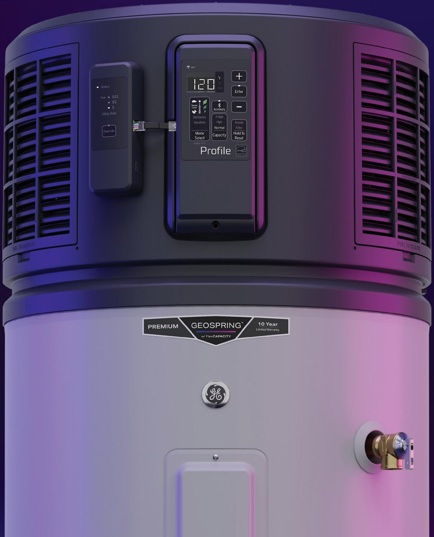 HEATER from GE Appliances utilizes advanced heat pump technology to provide up to 4.7 times more energy efficiency than standard electric water heaters and is up to 20% more energy efficient compared to other heat pump water heaters. Smart features through the SmartHQ™ app give owners total control, enabling them to monitor energy usage and costs, adjust temperature and capacity and set custom schedules. A Wi-Fi enabled sensing anode rod alerts owners when replacement is needed, extending the water heater’s life and performance.