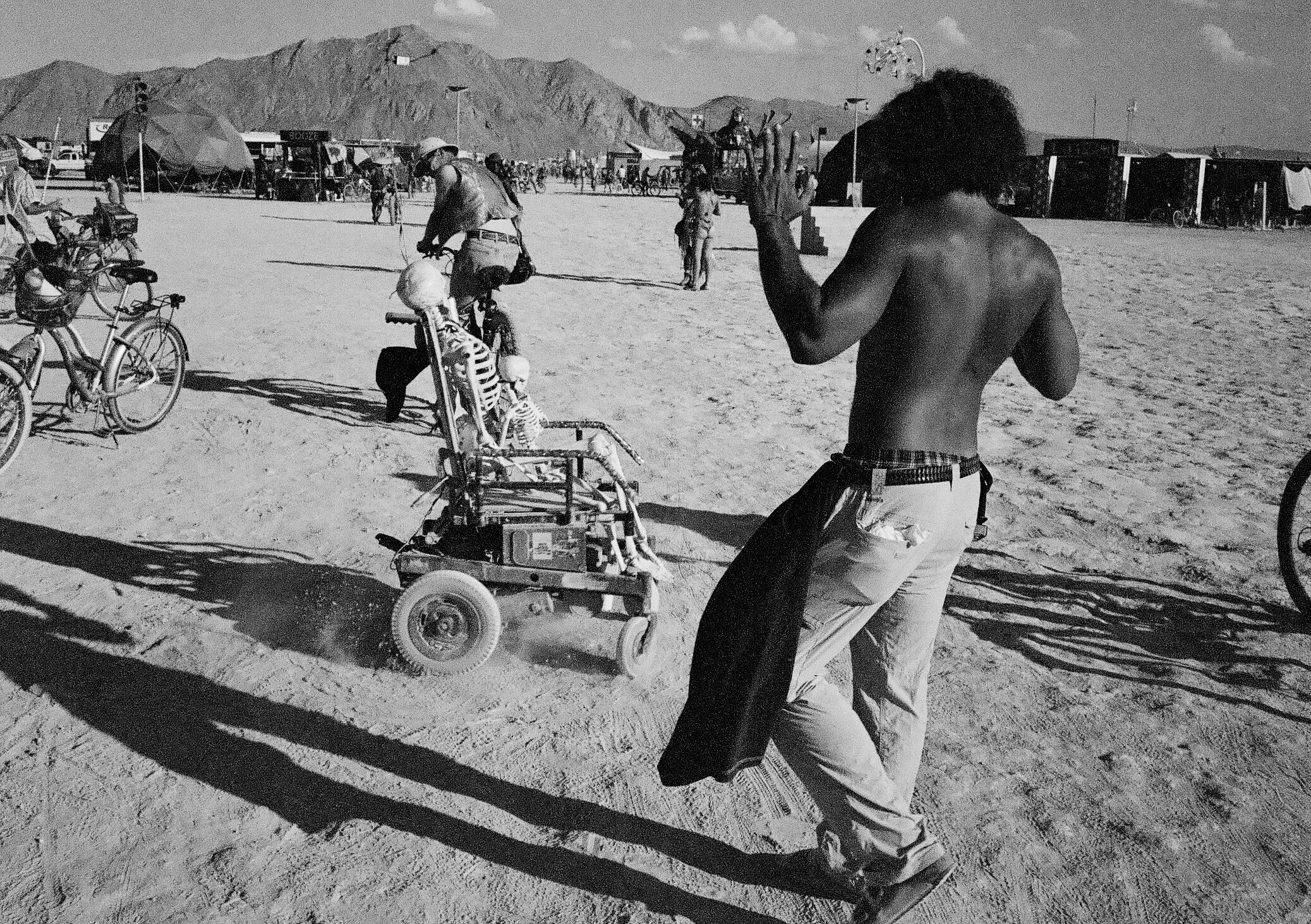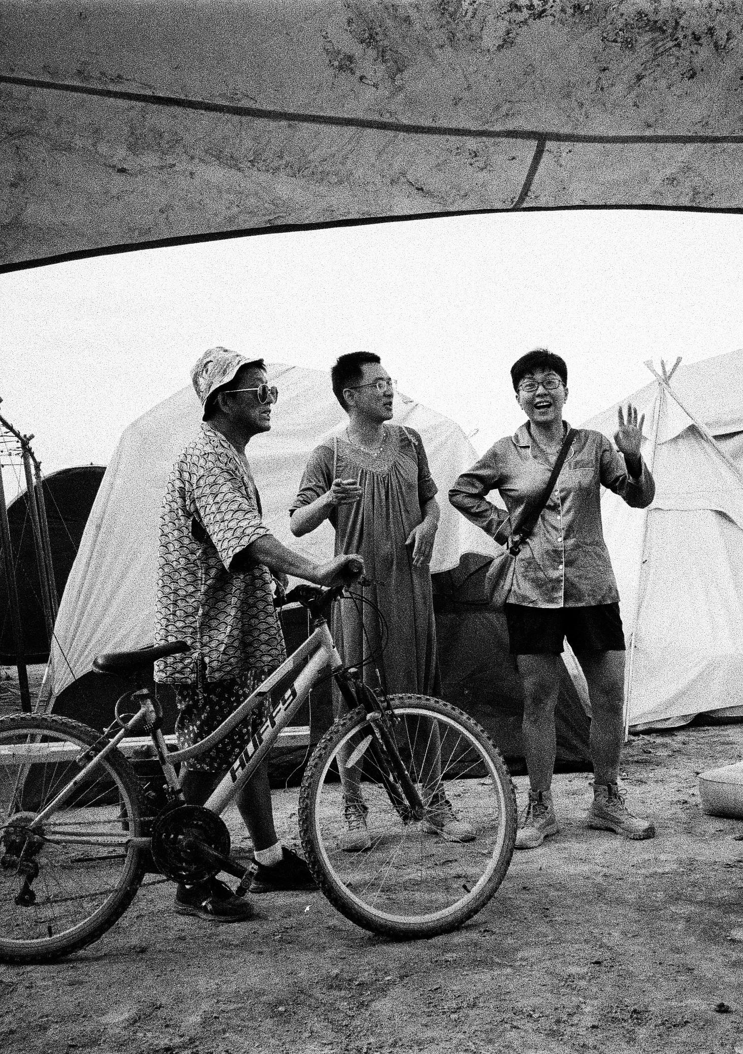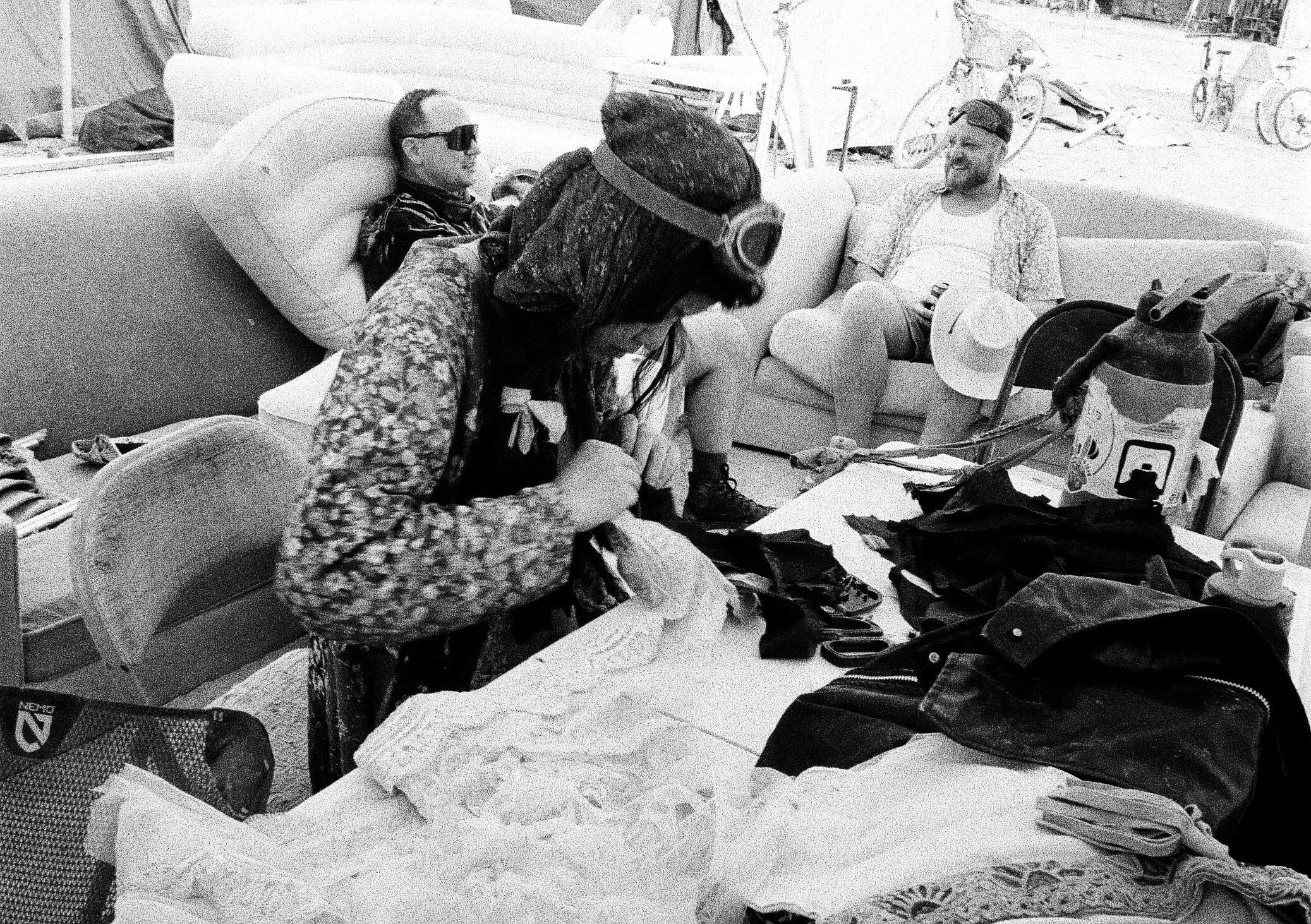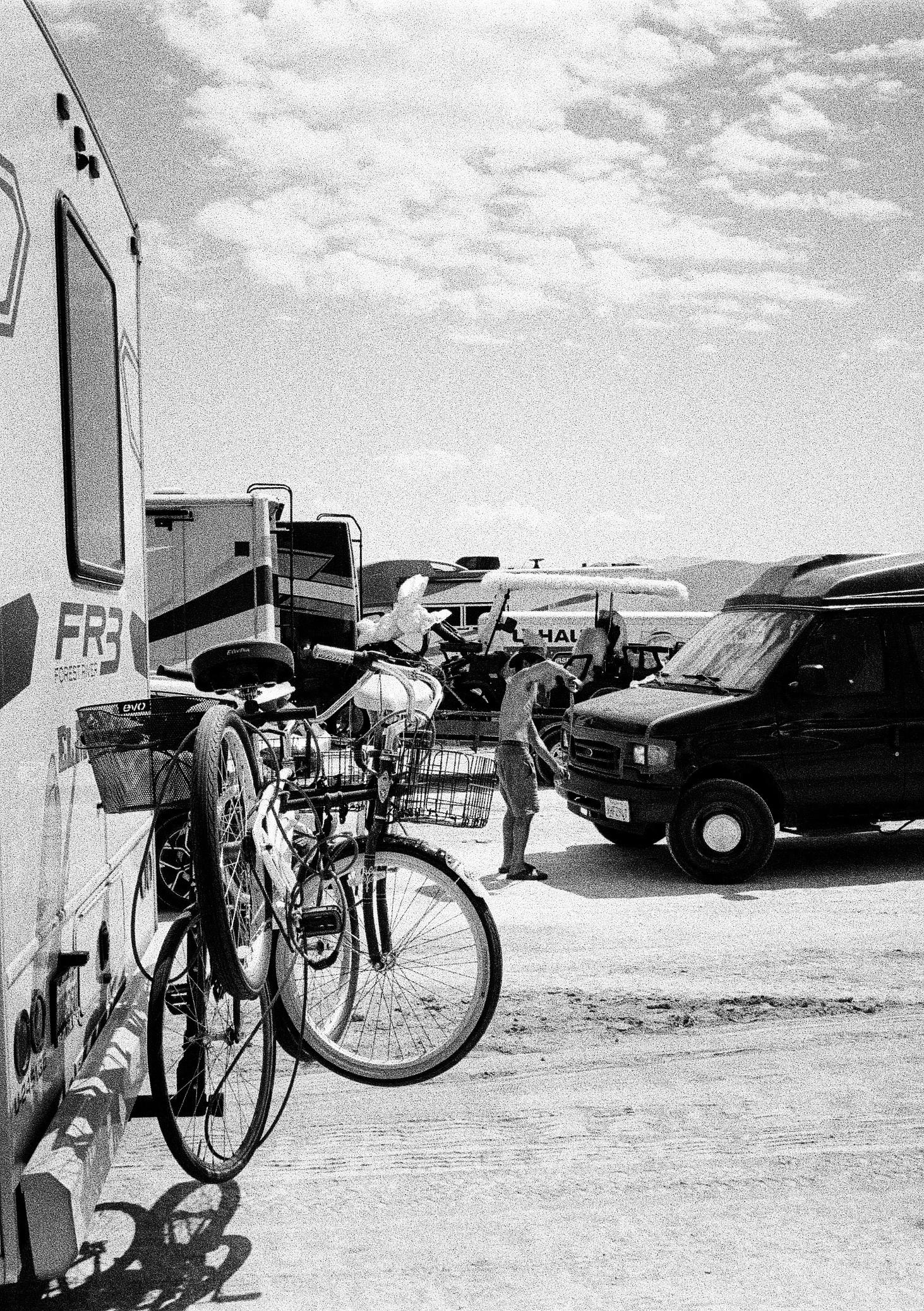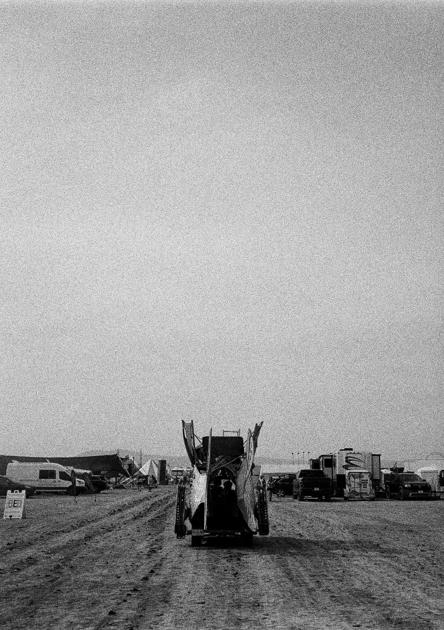 I try to document the ordinary moments within this ephemeral metropolis in the Nevada desert every summer, a less performative side of Burning Man. It’s easy to perceive Burning Man as a festival, a fringe festival, and the “Burners” (people of Burning Man) as the life of the party. In fact, it’s about communities, dreamers from all over the world who challenge the boundaries of colonial and capitalist narratives. Together, they fabricate an out-of-the-world reality that offers a glimpse of an alternative world, one that goes beyond the edge of pleasure.