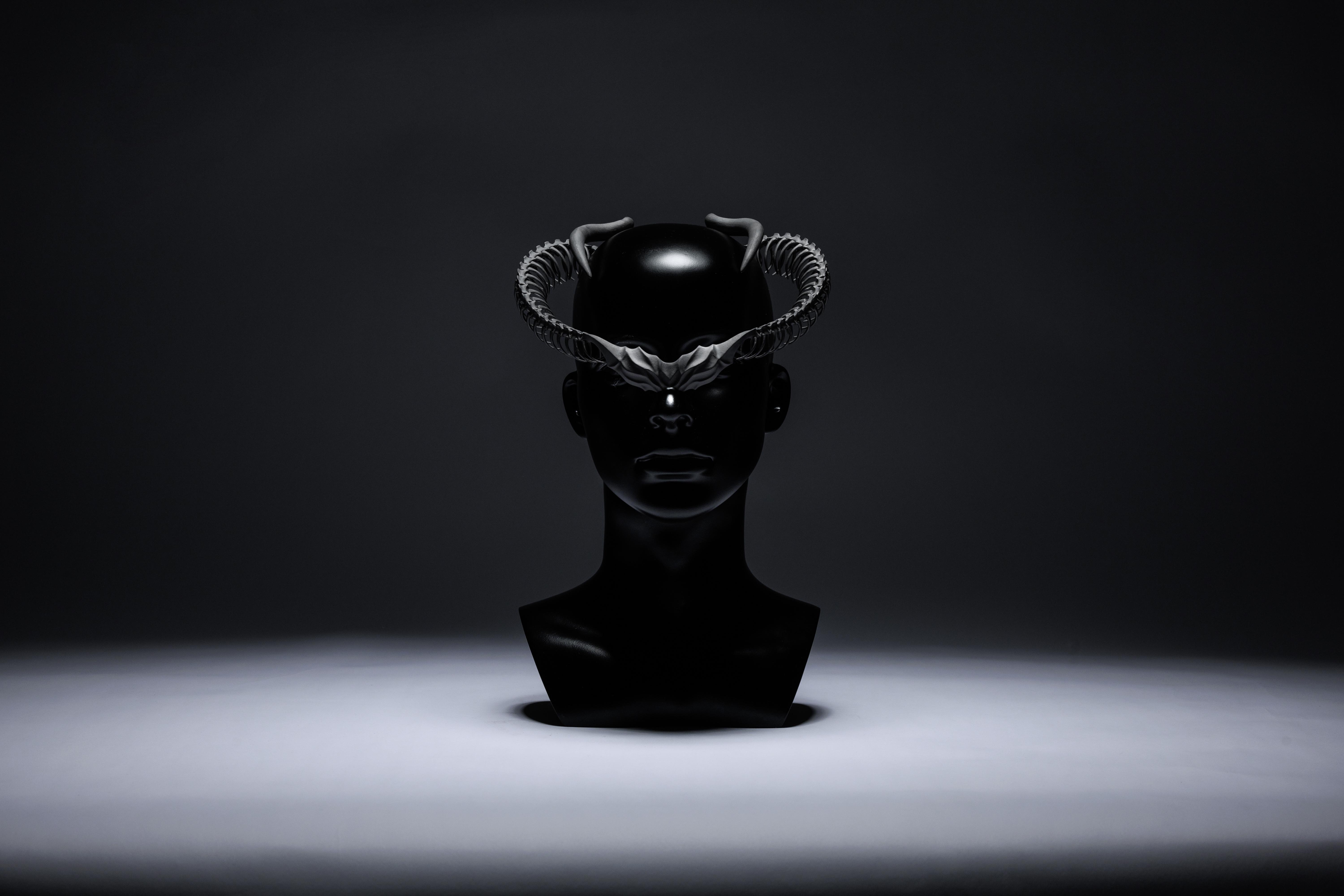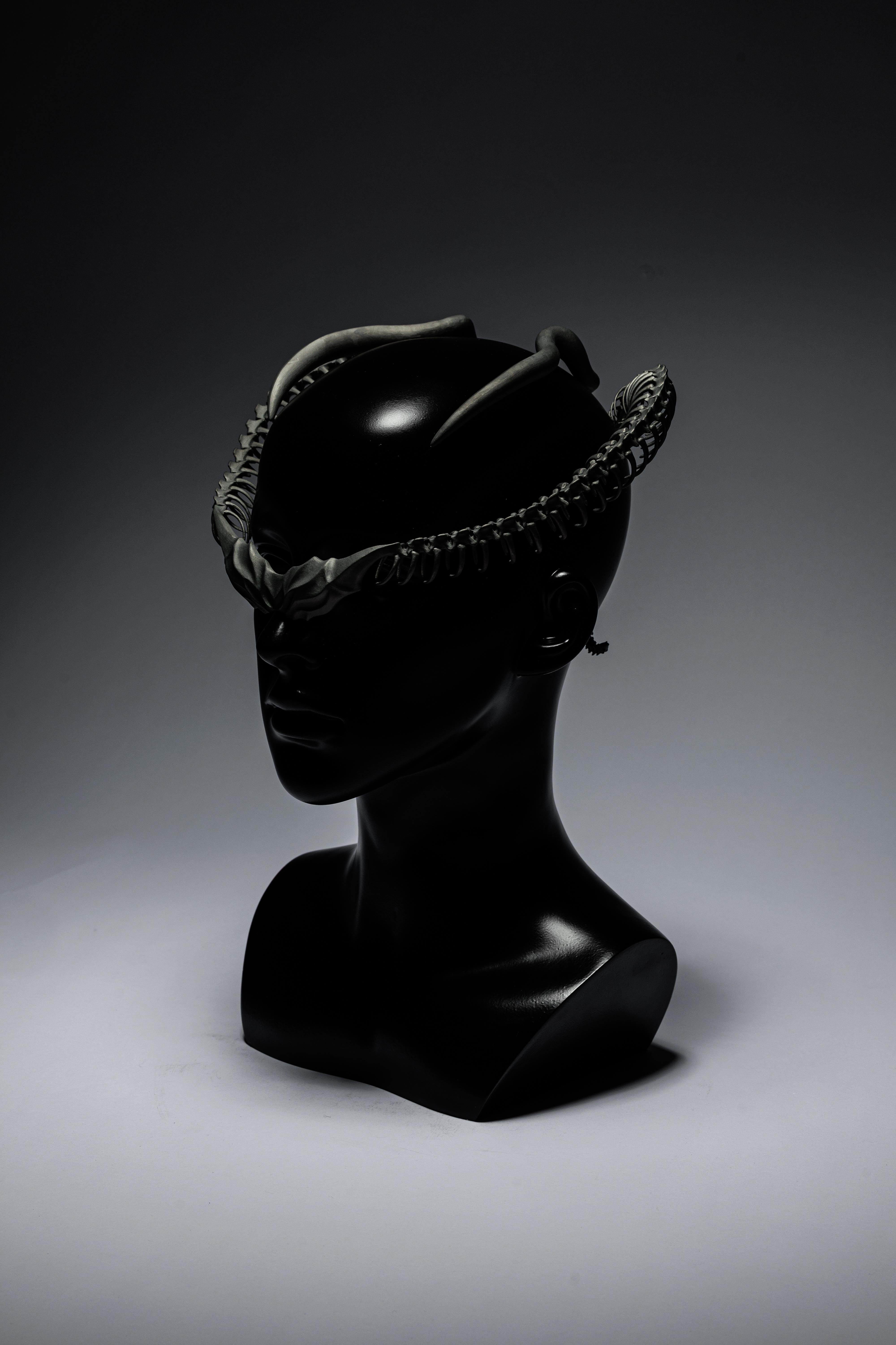 A contemporary wearable art piece designed to discuss the relationship between human religion and technology in the fashion future.