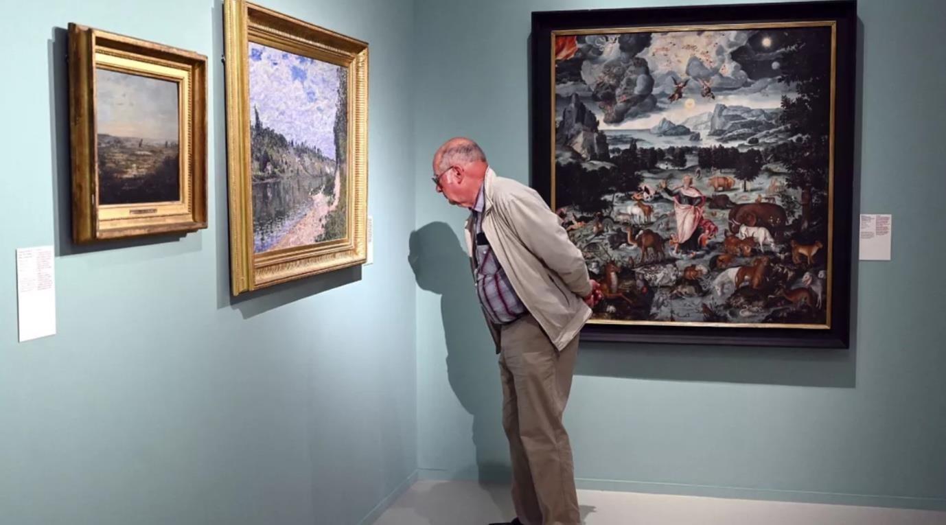 Fig 18 – AFP. (2022). A Visitor looks at a Painting at the ‘Past, Present, Future of works recovered in Germany in 1945. [Photograph]. Strasbourg