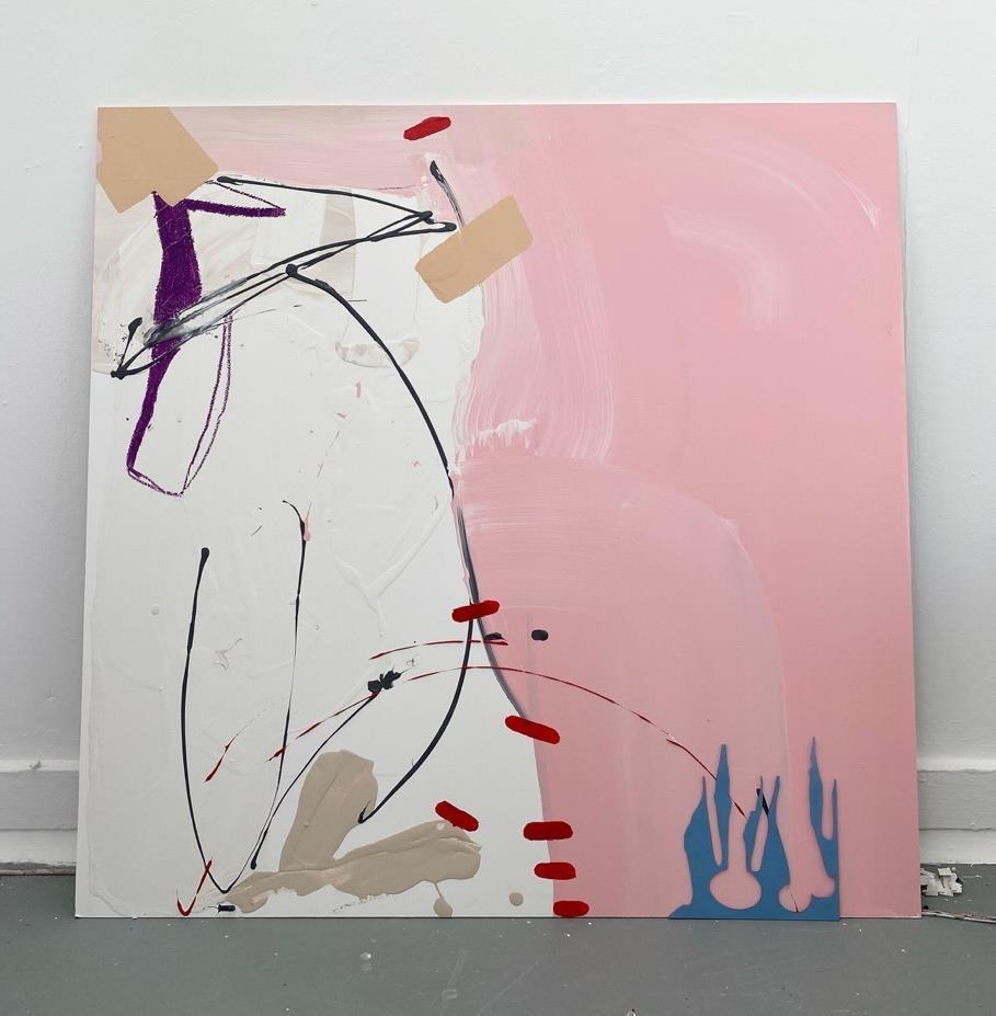 Jenna Maclean (2001) is an artist from the West coast of Scotland and is now based in Dundee, Scotland. Her work consists of Intuitive and gestural Abstract paintings. What is consistent throughout her work is the intuitive form within her paintings, and visible use of impulsive energy carried out through her vigorous mark-making. While not feeling she fitted well within ‘traditional’ concepts of creating art, her practice follows the ideas of automatic drawing and painting. Her art strives for full automatism but has one distinct association: the use of exclusively recycled materials. This means her art is not just a result of her artistic expression, but also the reality of the materials she can find.