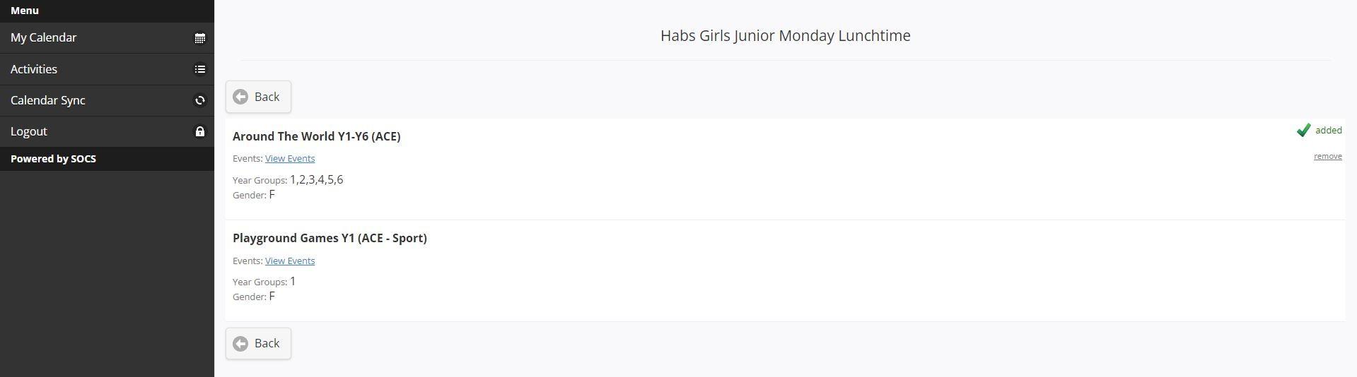 Once selected, pupils can view their lunchtime co-curricular choices using SOCS.