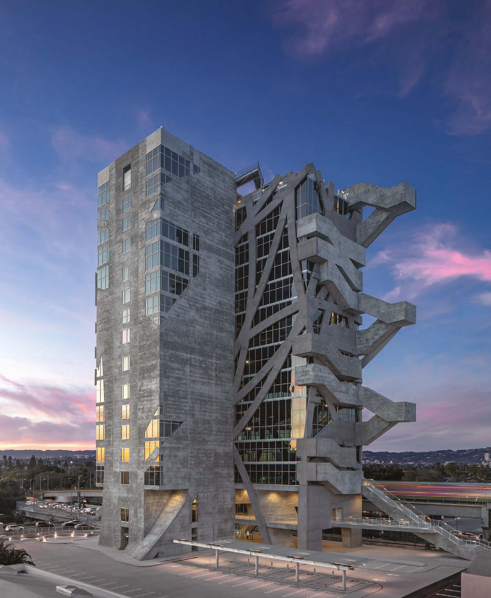 The hot topic building of the moment—(W)rapper— by Eric Owen Moss Architects existed in some suspended stage of planning for decades before it became a physical steel-wrapped member of the built environment. Its fever dream form masks an incredible ingenuity that may keep this building in the Los Angeles cityscape for the next 2,000+ years. Regardless of the wide and varied opinions on its aesthetic, the building is designed to withstand earthquakes, while allowing flexibility in the layout of the floorplate to meet the evolving needs of the way work is done. Step into (W)rapper on page 44 and find out what everyone is talking about.