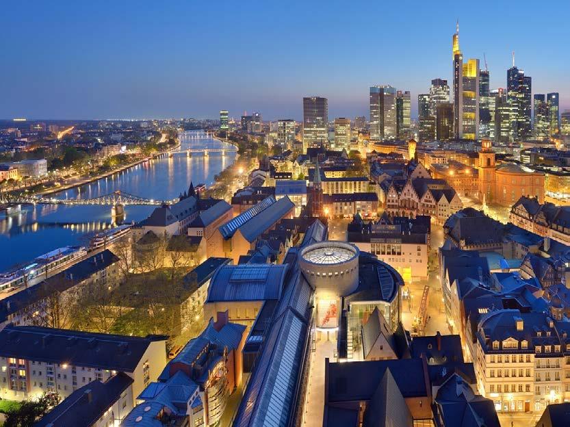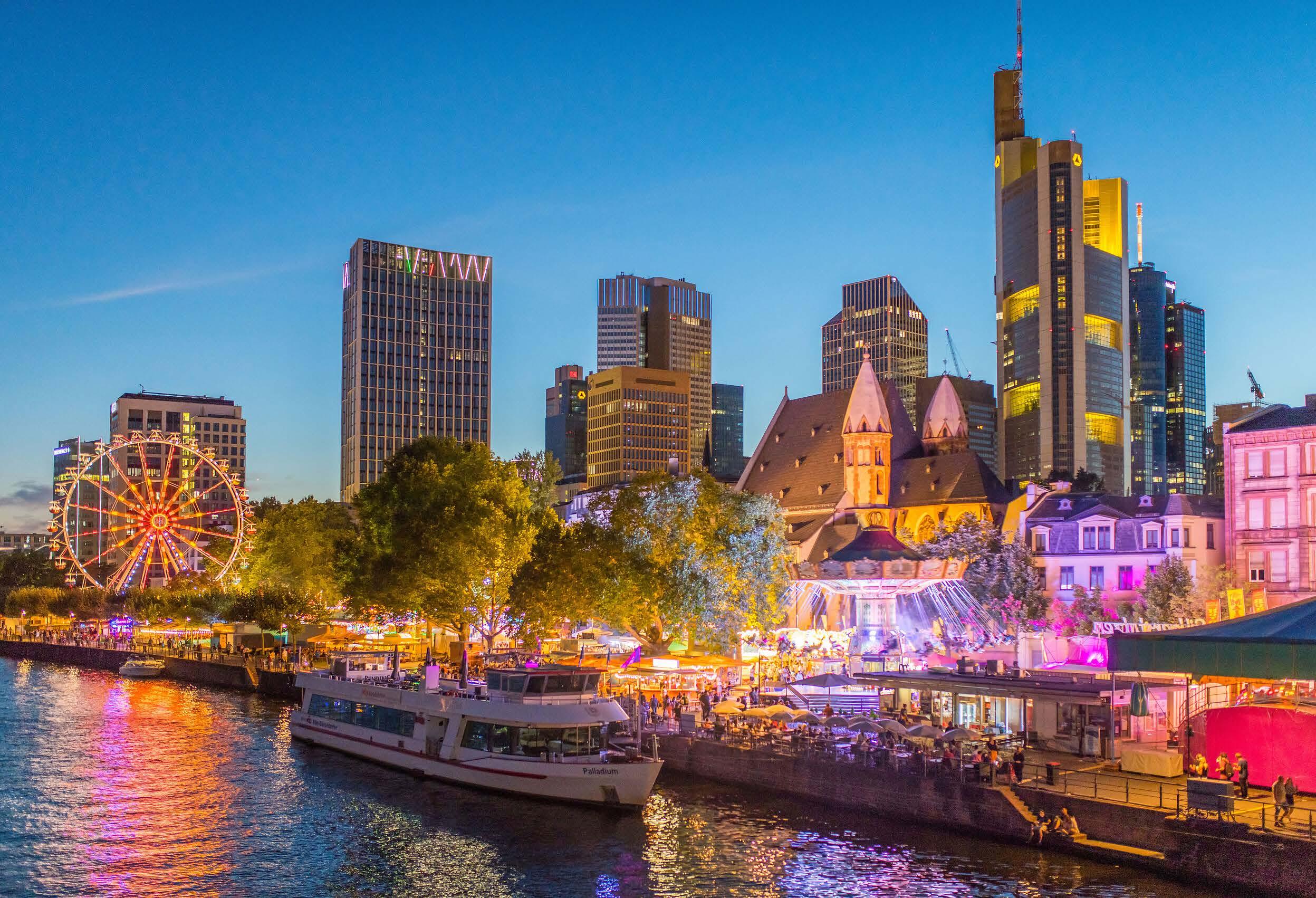 El horizonte de la ciudad, visto desde la orilla del río Meno, da testimonio del dinamismo económico de Frankfurt. Los amantes del arte, la cultura y la historia encontrarán su refugio en el malecón de los museos, mientras que el barrio de la estación atrae a los visitantes con su diversidad culinaria y cultural.