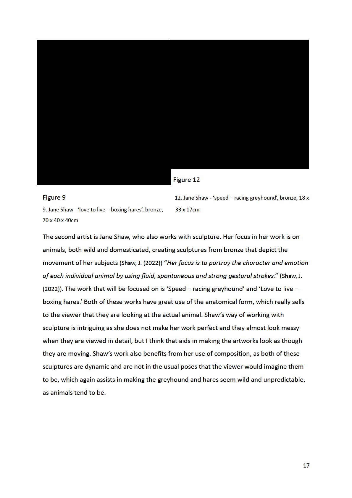 Shaw, J. (2022) Biography: Jane Shaw sculpture: Bronze animal and wildlife sculptor, Jane Shaw Sculpture. Available at: https://www.janeshawsculpture.com/the-artist/ (Accessed: 06 January 2024).